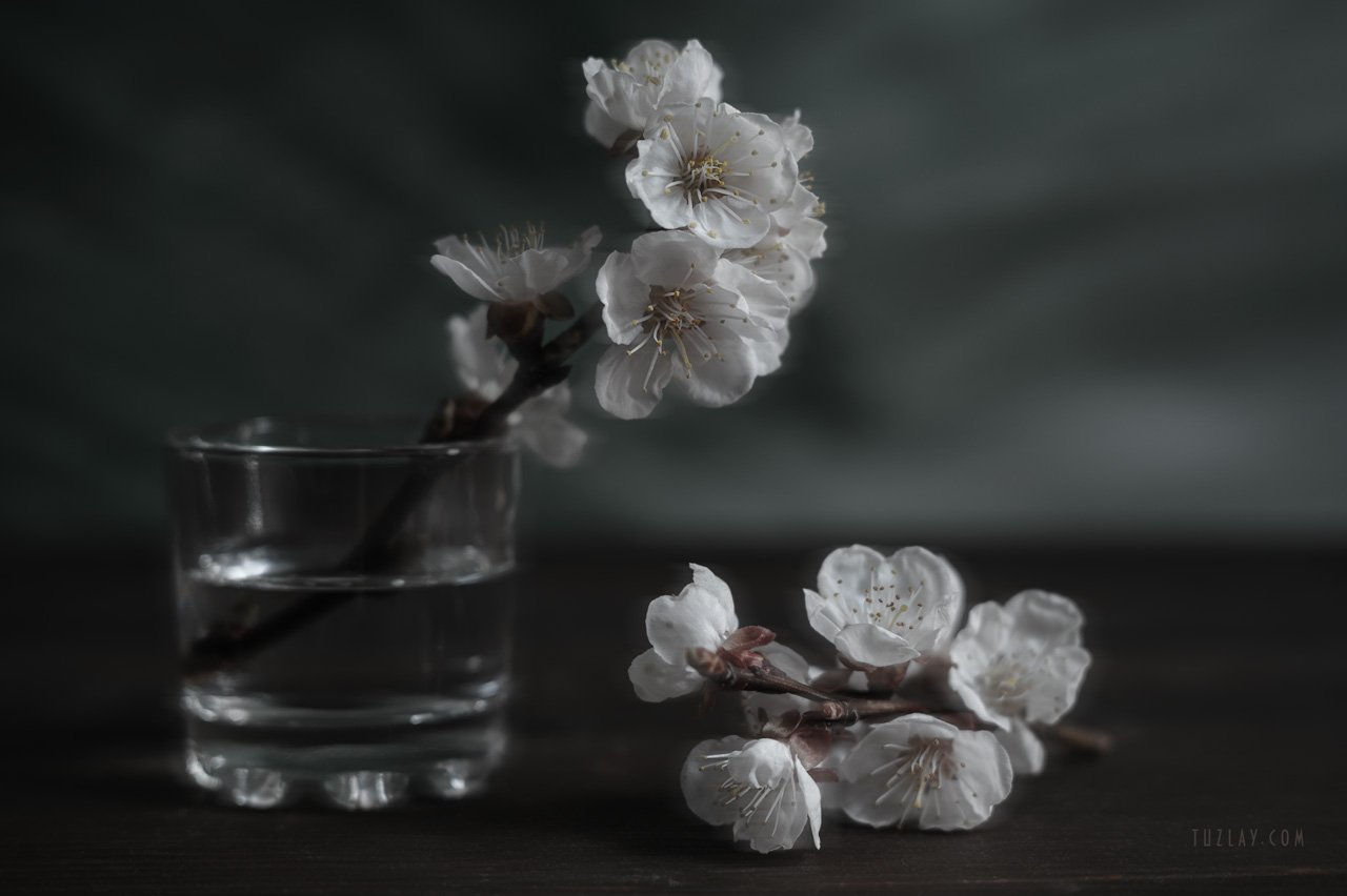 весна в стакане, белый цветки, цветки абрикоса, Владимир Тузлай