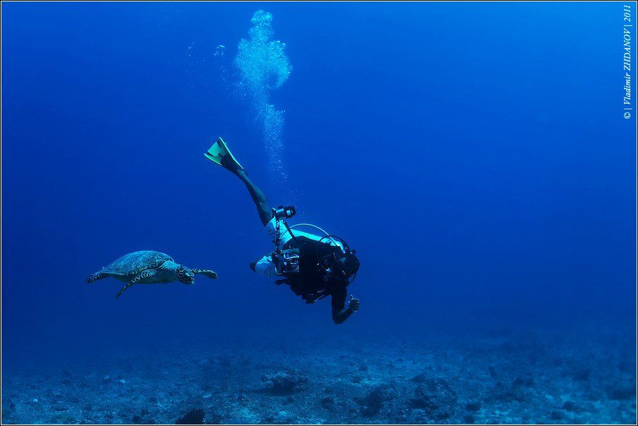 Обрезку в квадрат не люблю, она мне кажется... куцей, что-ли... В этом случае хотелось заострить внимание не только на сюжете, но и на той толще воды в которой мы находимся при погружении... Здесь над нами метров двадцать есть ещё точно... Как-то так... Спасибо, Сергей...
