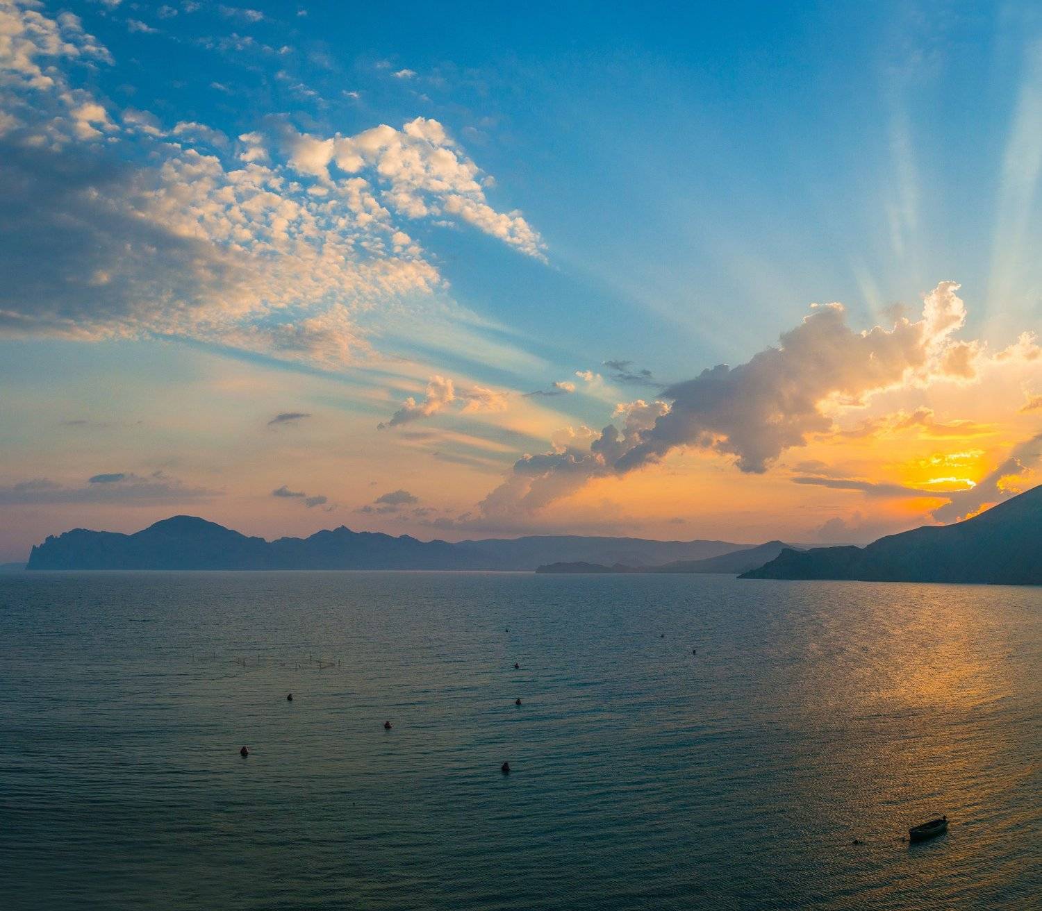 Крымский берег прекрасен, а в лучах заходящего солнца просто великолепен