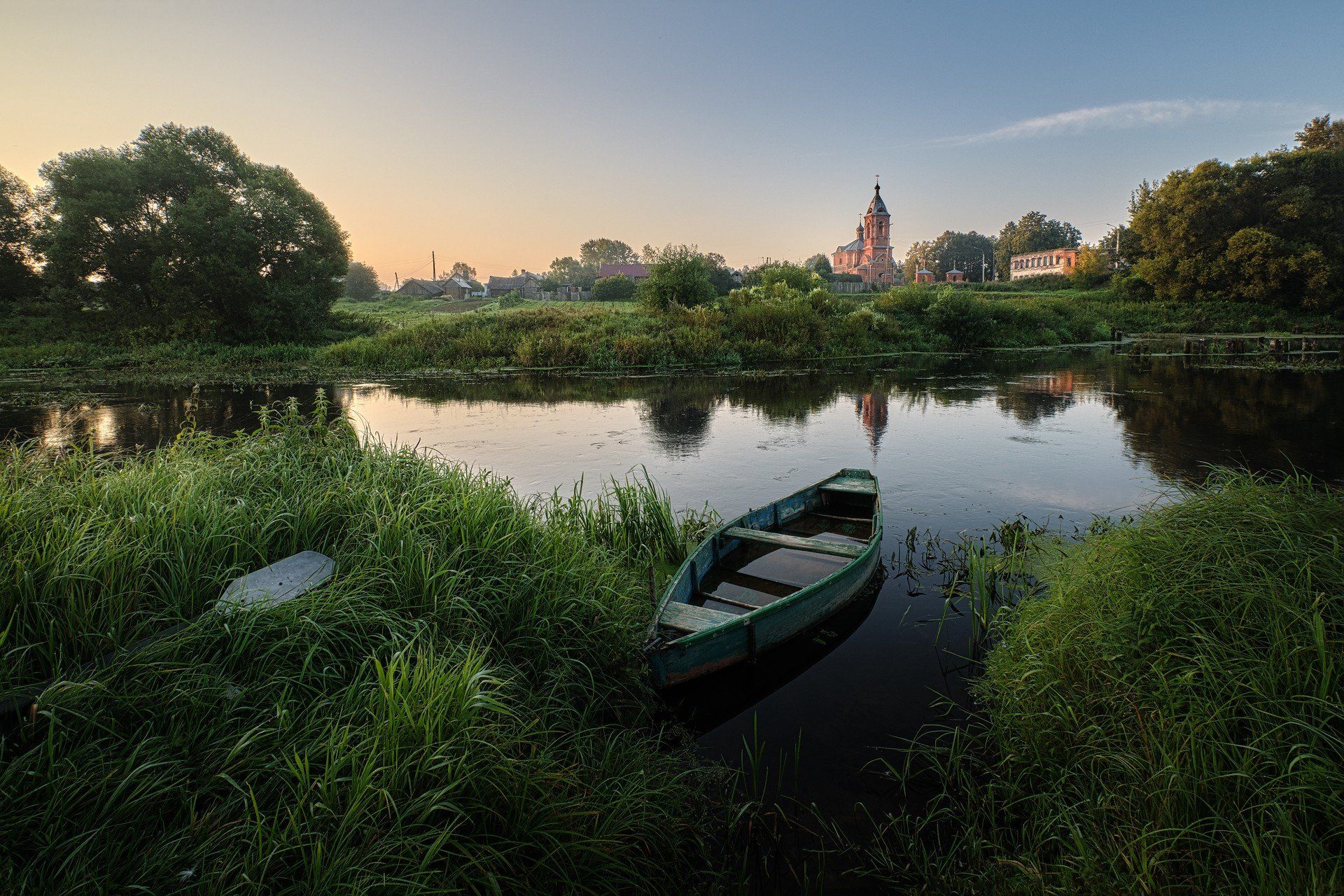 пейзаж, с, лодкой, Григорий Бельцев
