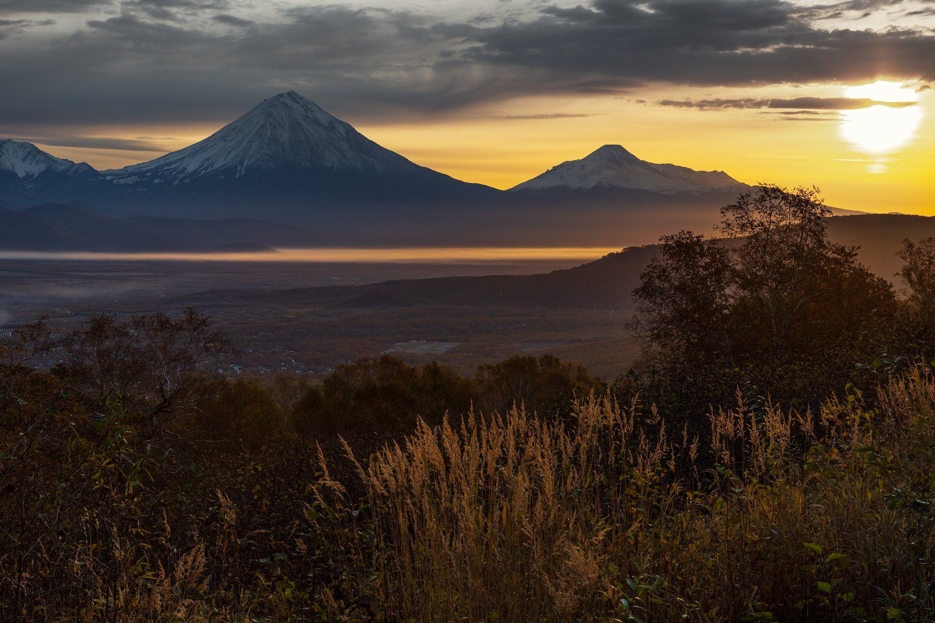Камчатка, вулкан, рассвет, осень, туман , Александр Максин