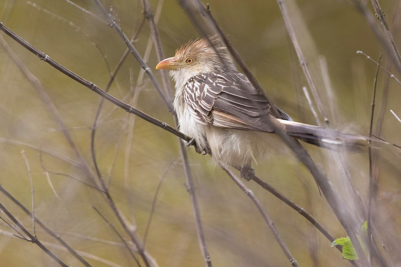 Это кукушка Гуйра (guira guira), живет в Южной Америке. Интересен этот вид не только харизматичной внешностью, но и своим поведением. Живут птицы стаей с четкой социальной иерархией . Частенько помогают друг другу высиживать птенцов в одно большом общем гнезде , вместе воспитывают молодежь. Да-да, эти кукушки никому свои яйца не подкидывают.