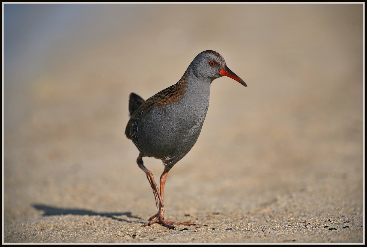 Водяной пастушок (лат. Rallus aquaticus) - небольшая птица семейства пастушковых (лат. Rallidae). Очень скрытен, ведёт преимущественно ночной образ жизни. Размерами сравним с коростелем или перепелом. Длина тела - 23-28 см, размах крыльев около 40 см, масса достигает 180-190 г. Полового диморфизма нет, но самцы обычно несколько крупнее самок. Верх тела буровато-оливковый с чёрными продольными пестринами и полосами, низ серо-голубой. По бокам тела хорошо заметны чёрные и белые полосы. Подхвостье белое, ноги розовато-коричневые. Радужка красноватая. Клюв длинный, изогнутый, красного цвета.