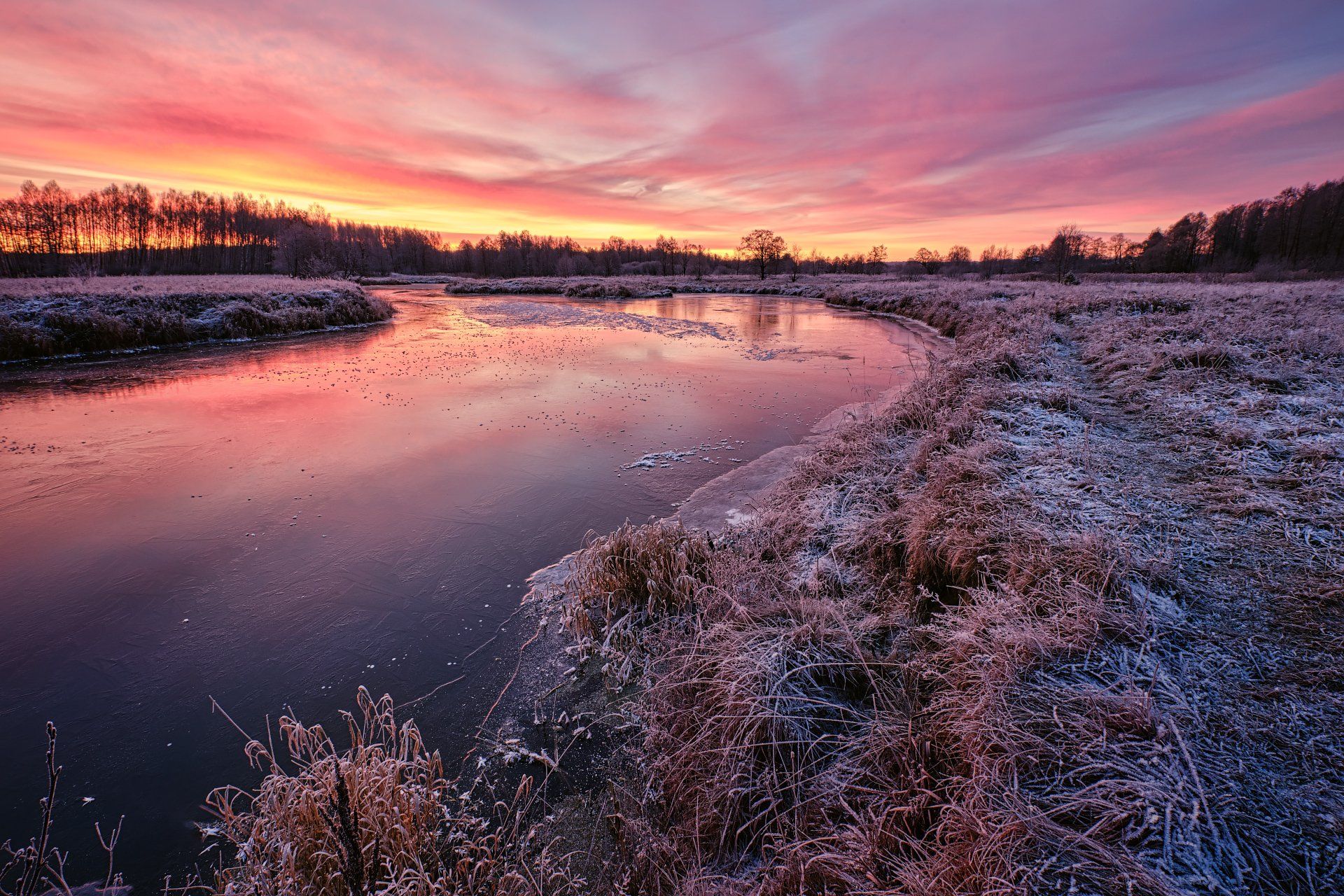 рассвет, иней, река, Григорий Бельцев