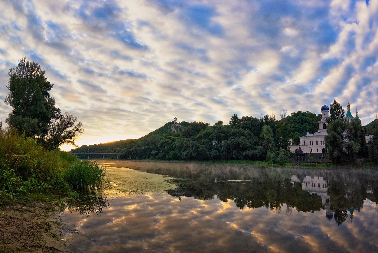 Очень умиротворяющая обстановка. Поднимается лёгкий туман от реки. Замечательно.