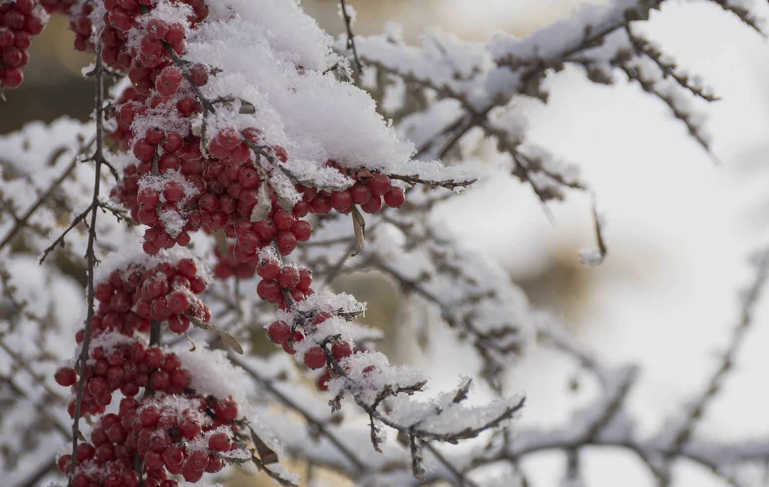 зимняя ягодакрасная облепихаснег