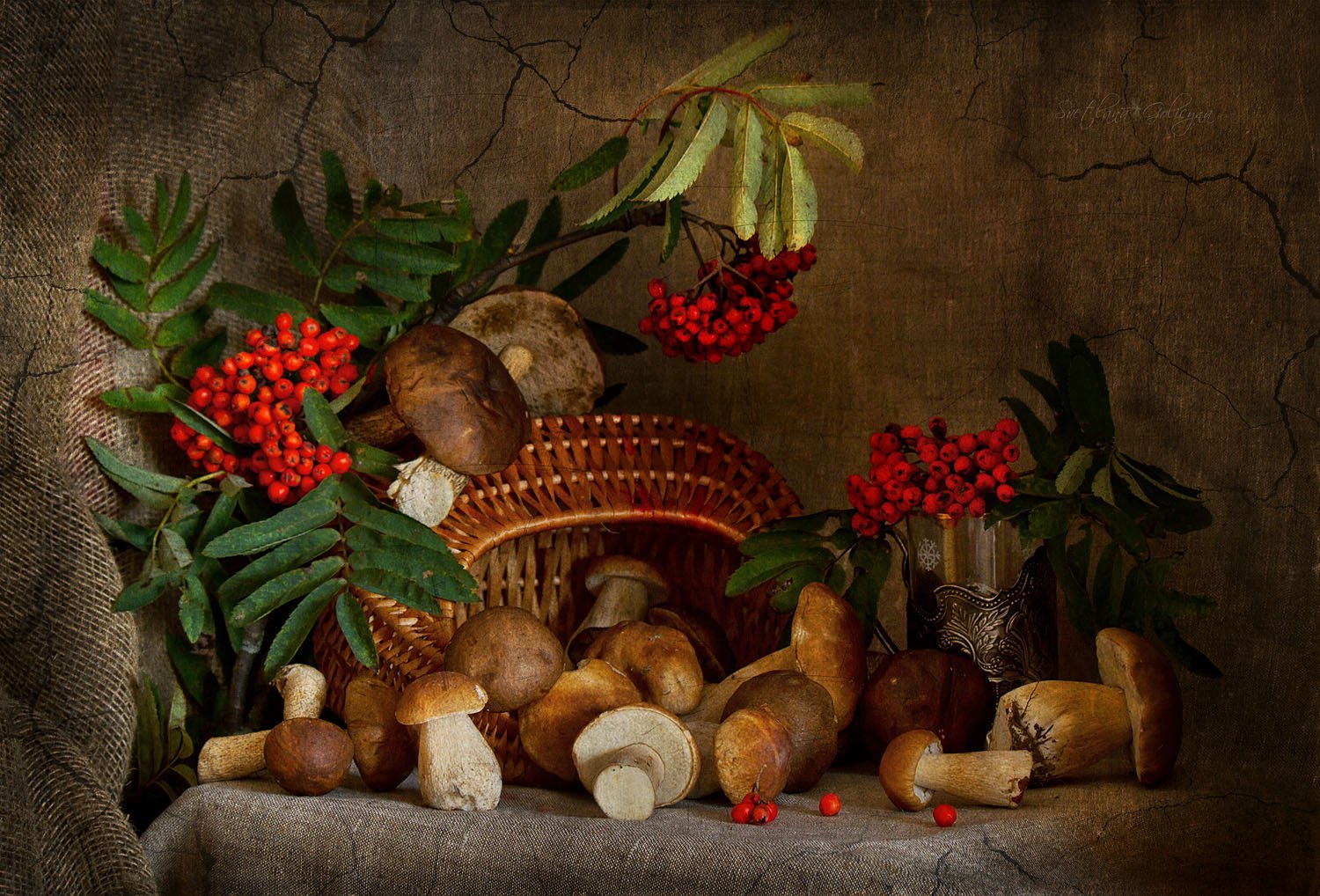 натюрморт, грибы, рябина, осень, светлана голицына