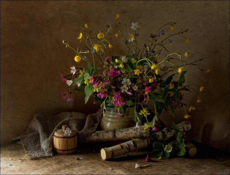 Летом хорошо - вышла на даче за калитку, цветочков-веточек насобирала, в бане поставила - и готово). Мучаюсь вот сейчас, нет света нужного в квартире, особенно для заказанного деревянного натюрморта)