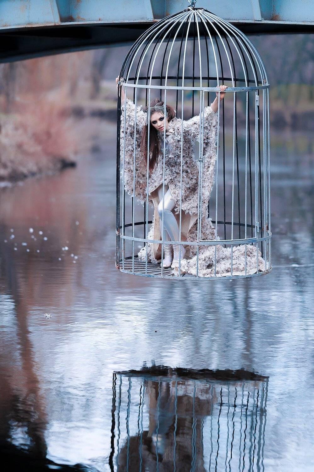 зима птица девушка арт