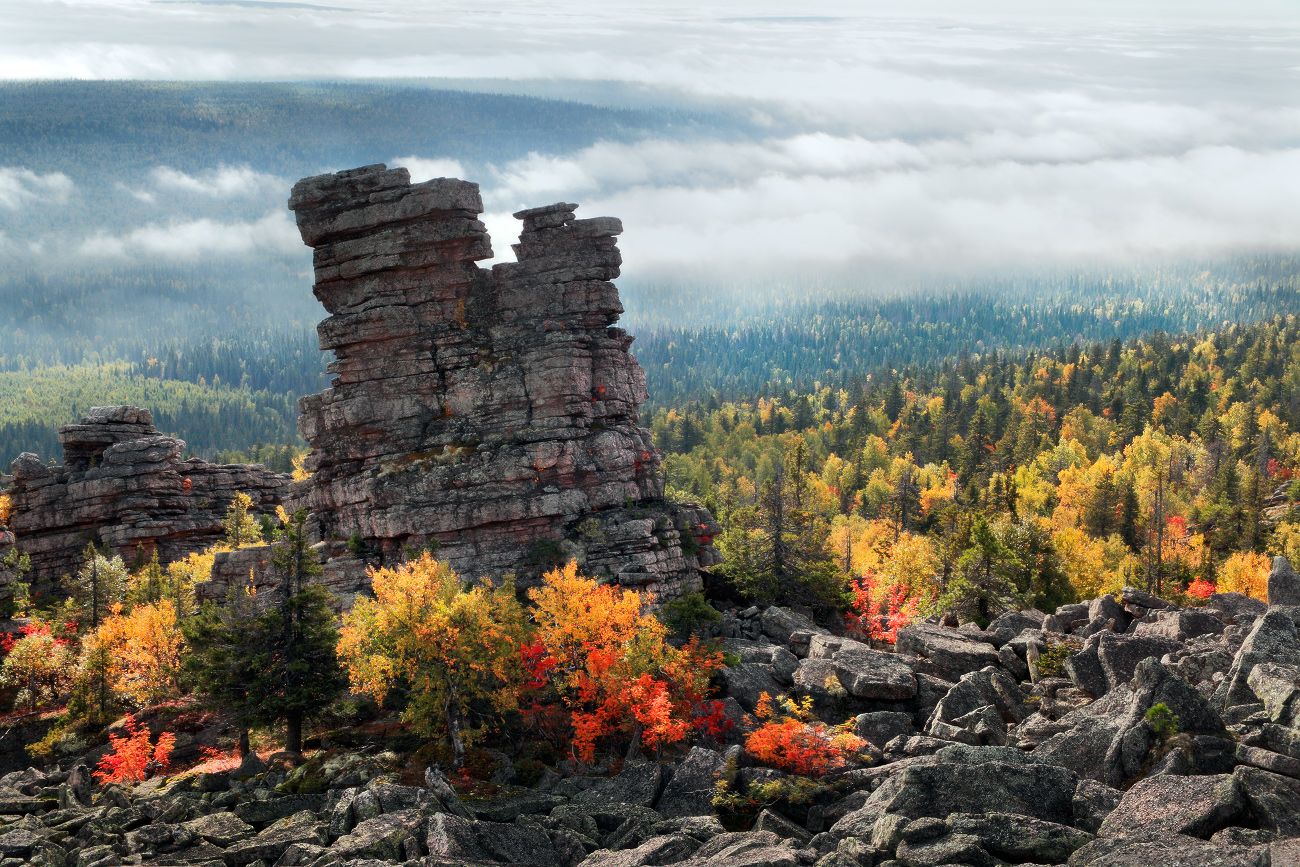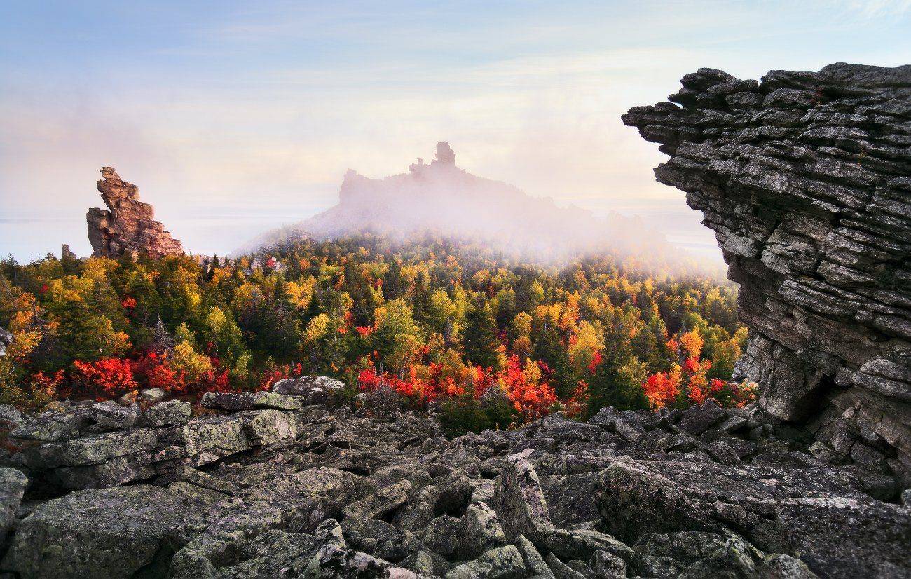 Вот это да..А ведь чтобы снять такую красоту-пришлось пройти немало.Вспыхнула, зажглась красавица осень.И даже скалы танцуют вальс бостон?)
