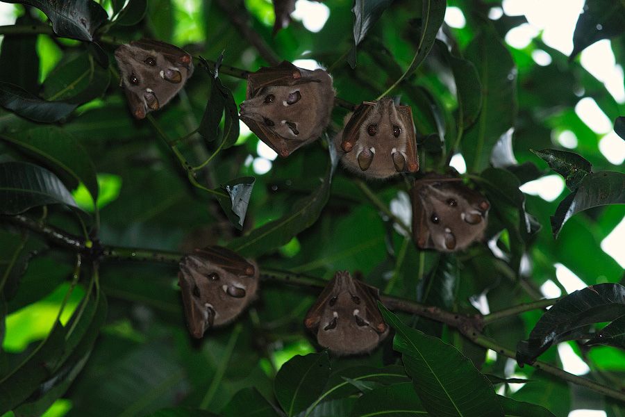 В Бахр-Даре на территории отеля жили вот такие замечательные крыланы. Днем они спали в кронах деревьев манго, а ночью ели упавшие плоды этого же дерева.