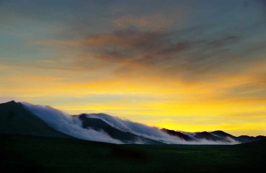 исландия, горы, закат, облака, туман, небо, Aleksey