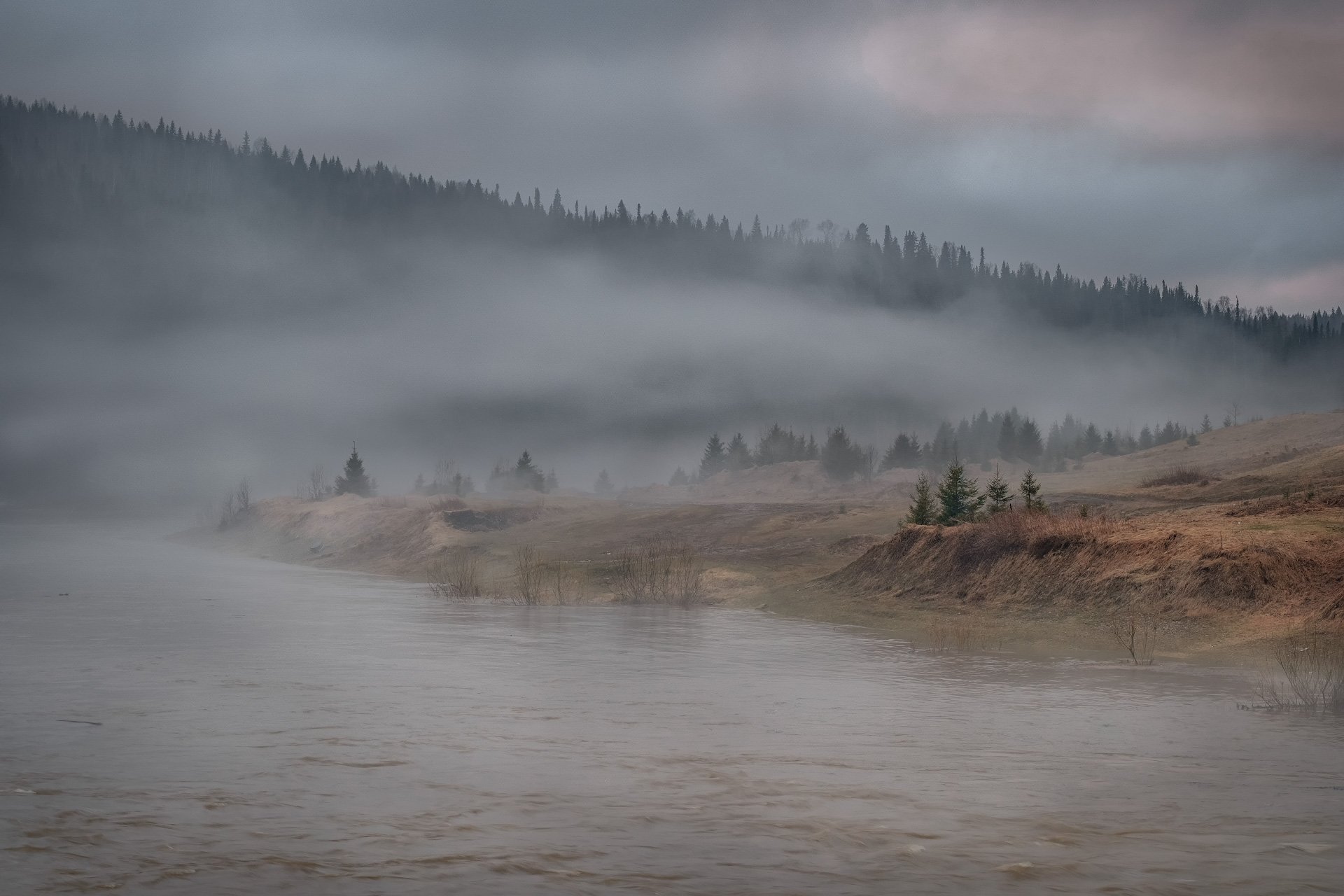койва, река, кусье-александровский, урал, пермский край, вечер, облака, небо, туман, лес, вода, Андрей Чиж