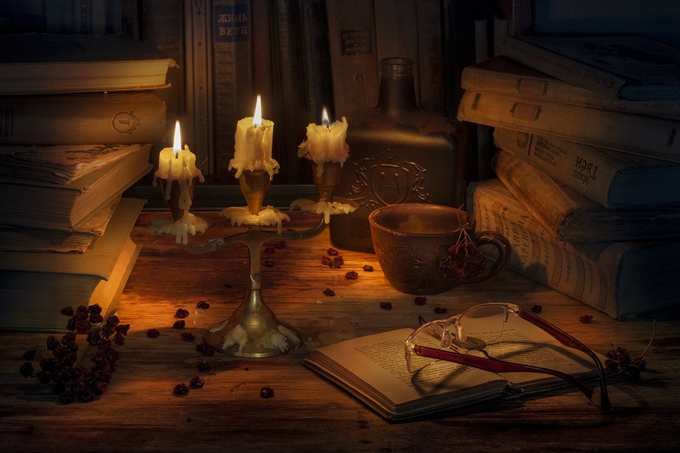 свечи,книги, Елена Рубинская