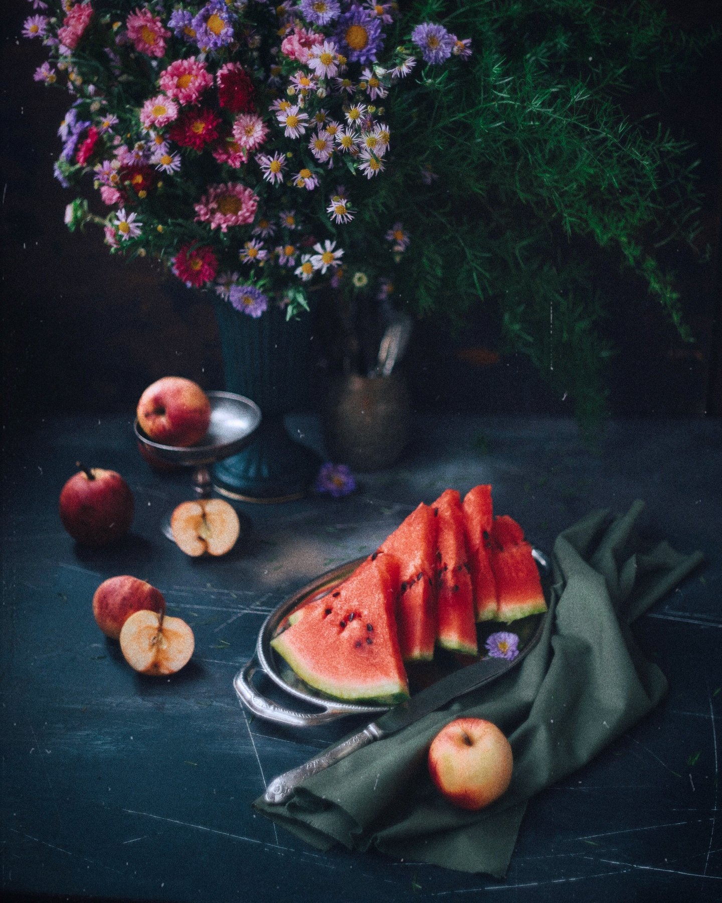 натюрморт, букет, арбуз, яблоки, цвет, Анастасия Зубкова
