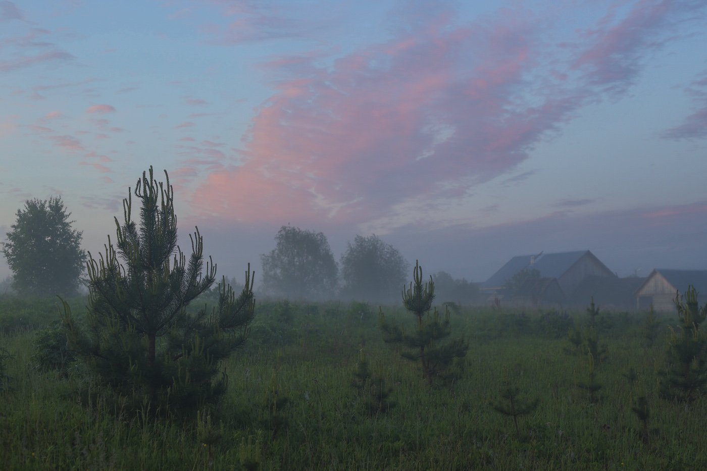 утро туман деревня поле сосенки, Дмитрий Алексеев