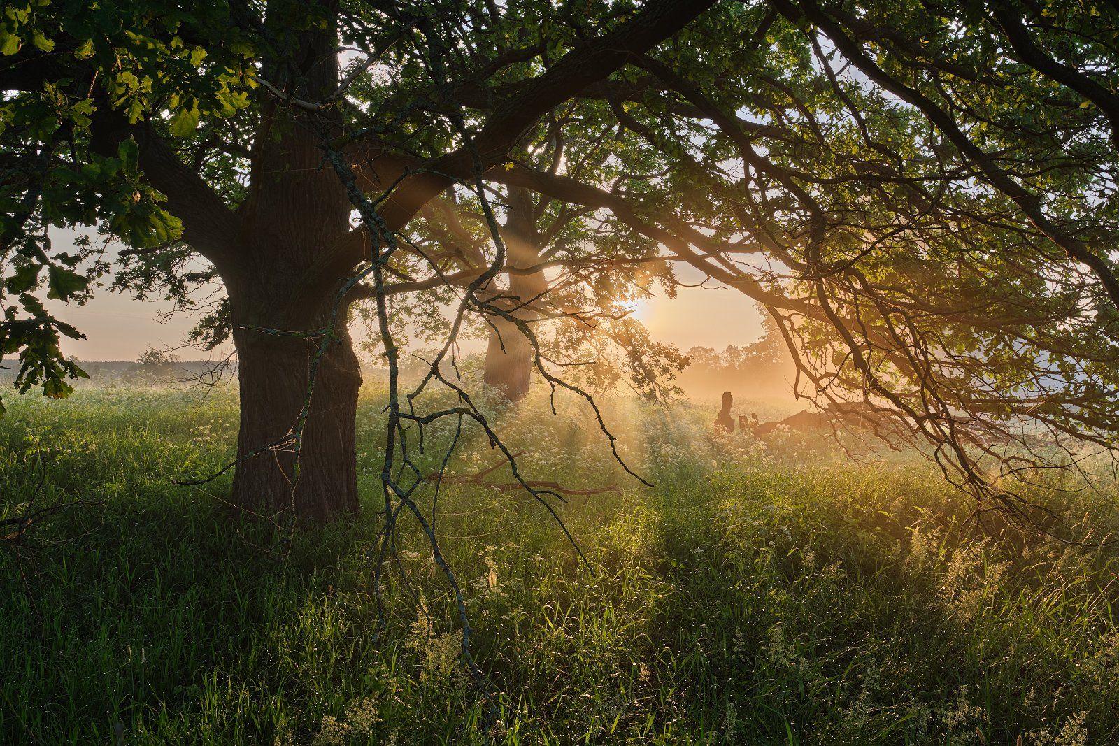 утро, рассвет, солнце, дерево, туман, Григорий Бельцев