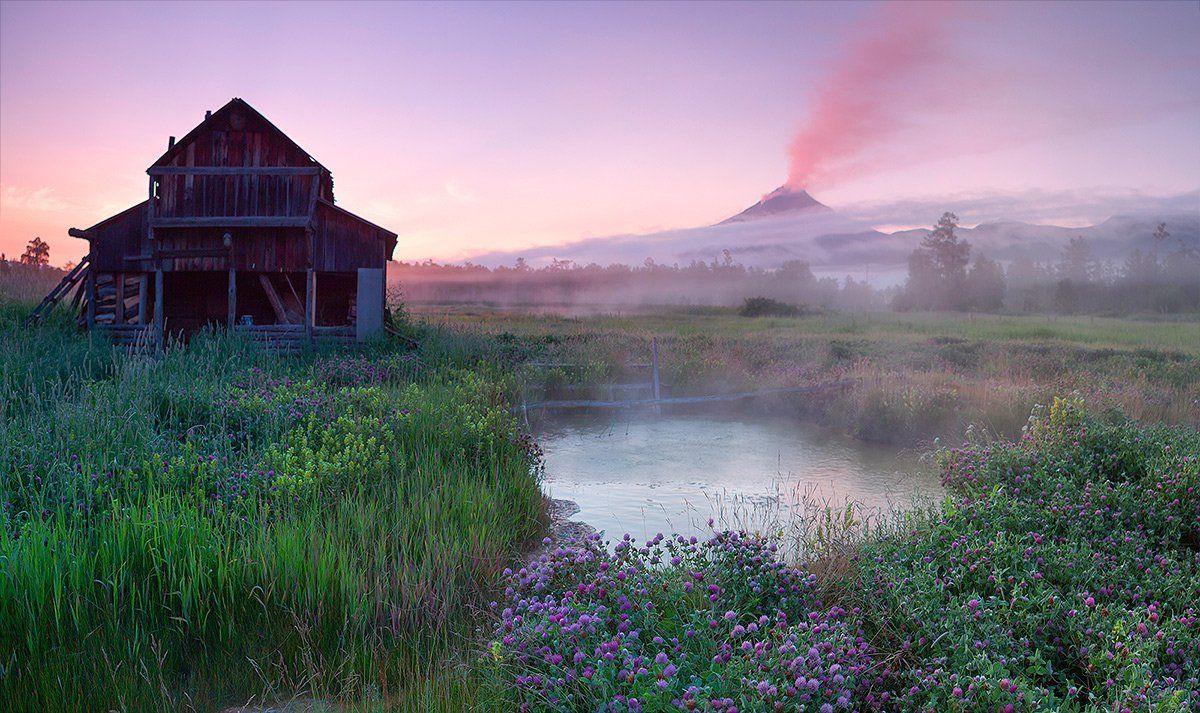 Кордон Кипелые на одноименных горячих источниках, на заднем плане извергающийся вулкан Кизимен. Это было самое замечательное утро в нашем путешествии по заповеднику.