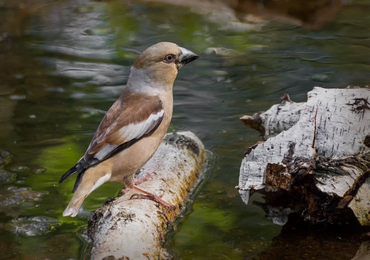дубонос на водопое.. (самка)