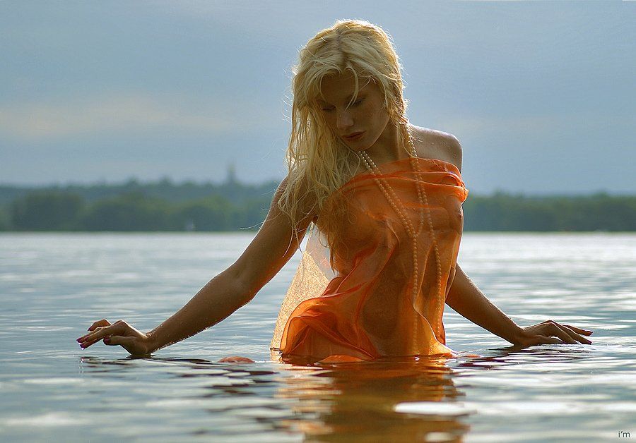 Там выше указывали на то что горизонт пополам режет кадр - ну не знаю, мне кажется как раз Алена здесь выстувает как то самое прекрасное связущее звено между водой и небом, и горизонт это только подчеркивает. Про центральную композицию кадра - может я слепой но мне кажется что тут все же есть некоторое смещение вправо что в совокупности с левой рукой дает легкую и тонкую динамику , я бы даже сказал воздушное перемещение!