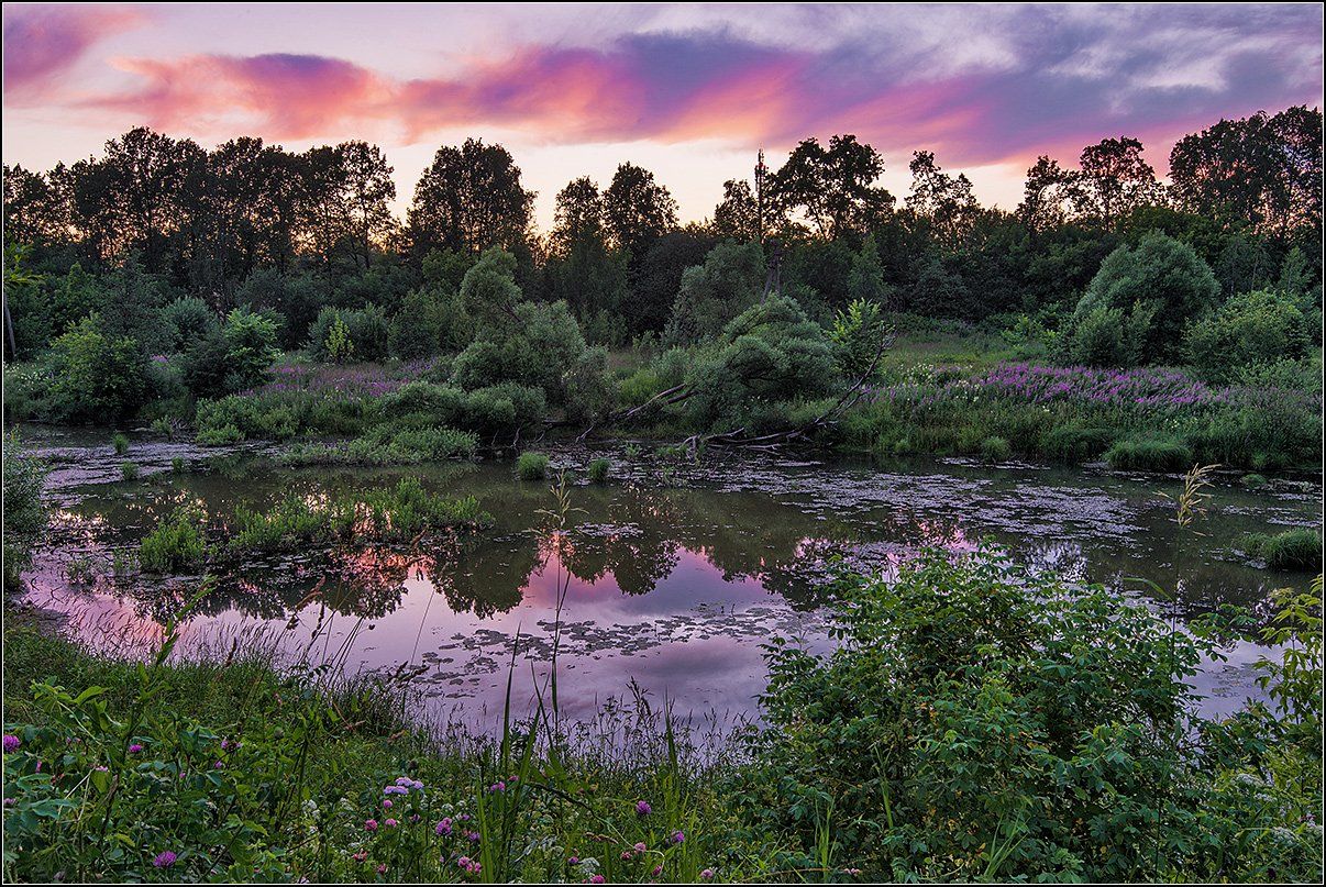 пруд, вечер, цветы, отражение, АНАТОЛИЙ ДОВЫДЕНКО