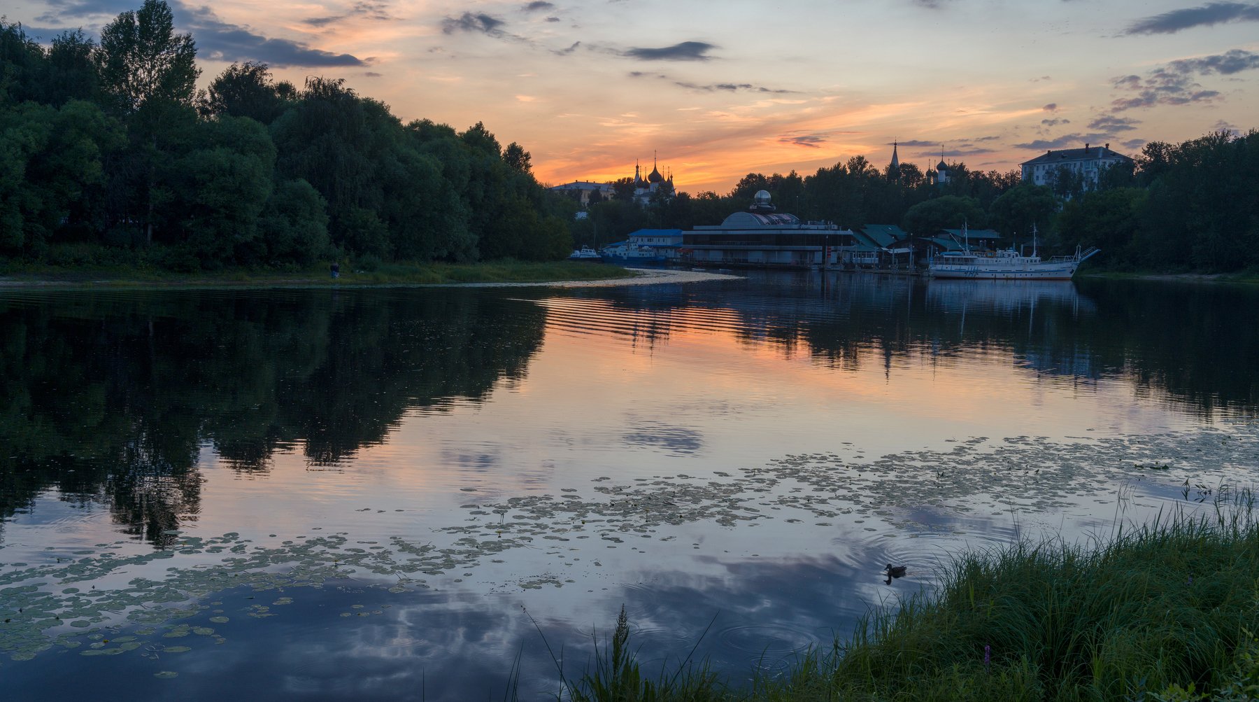 закат, заря, река, отсвет, корабль, судно, даманский, которосль.стрелка, Игорь Приданников