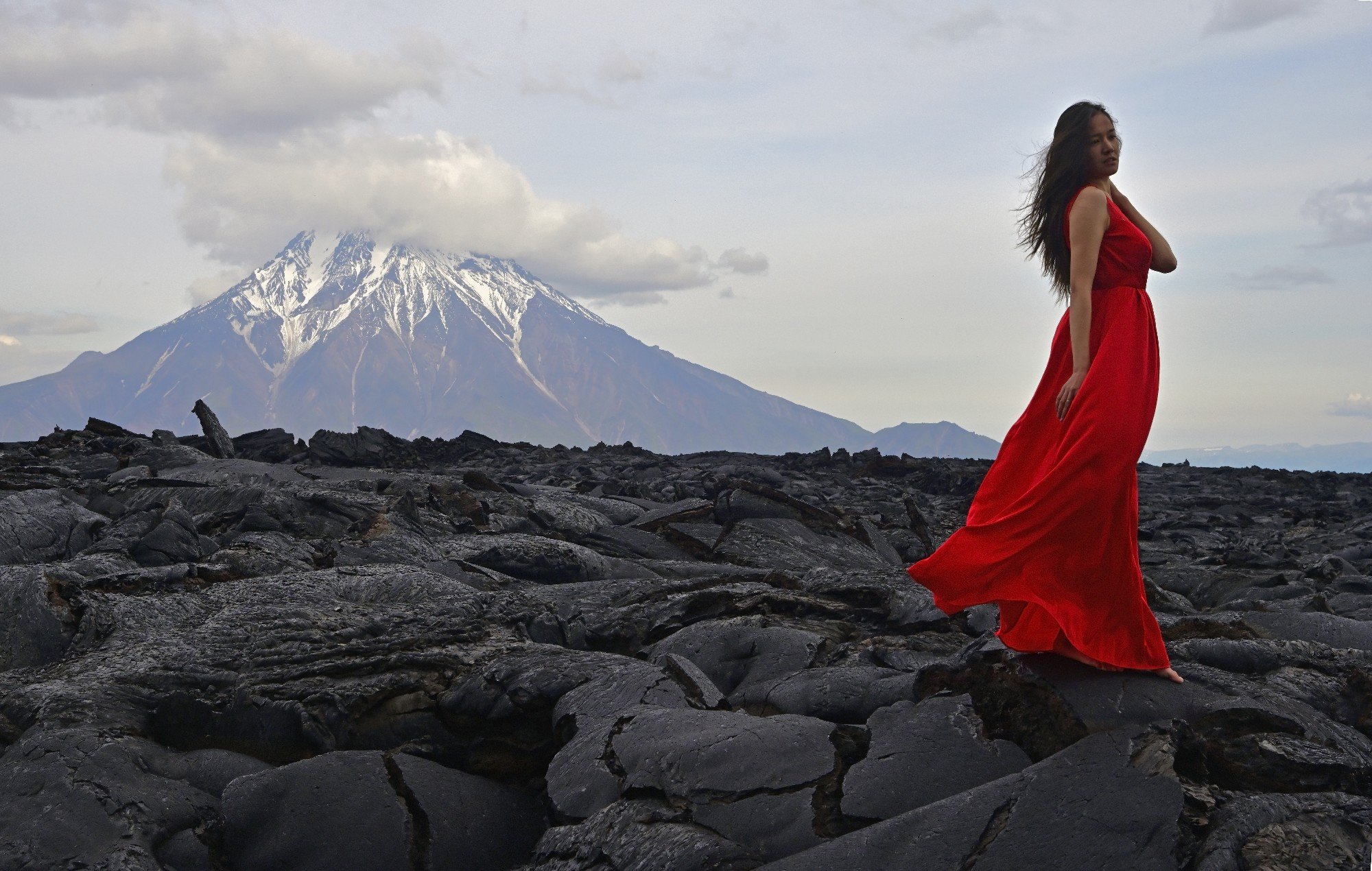 камчатка, девушка, вулкан, лава, фото, красный, Karasev Pavel