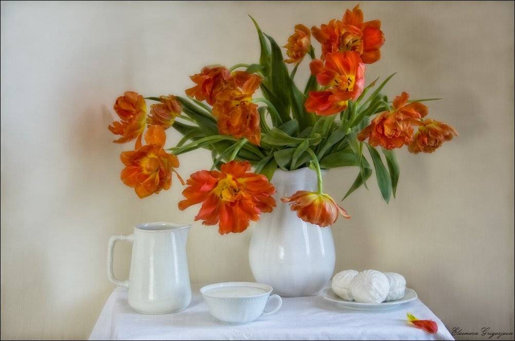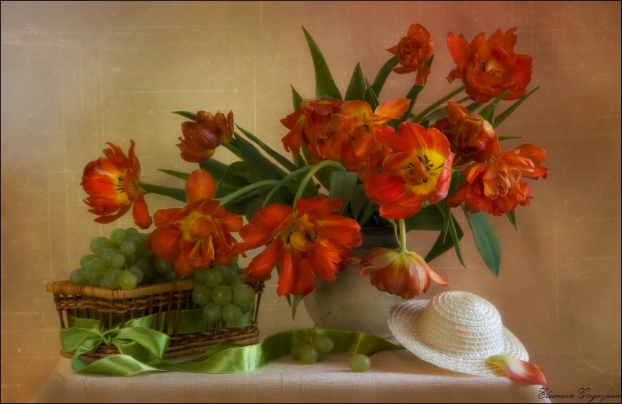 ) Первая. А то тюльпаны с виноградом в голове не укладываются.)