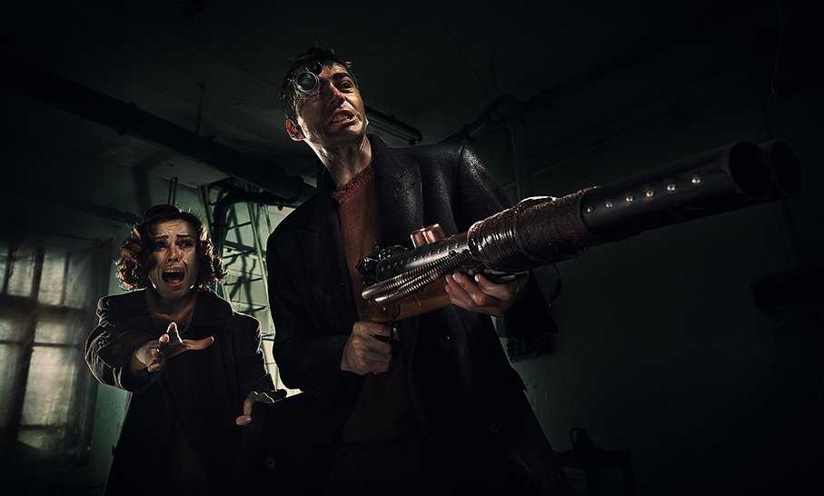 это паровое ружье. работает на угле. поражает цель на расстоянии до 80 футов.