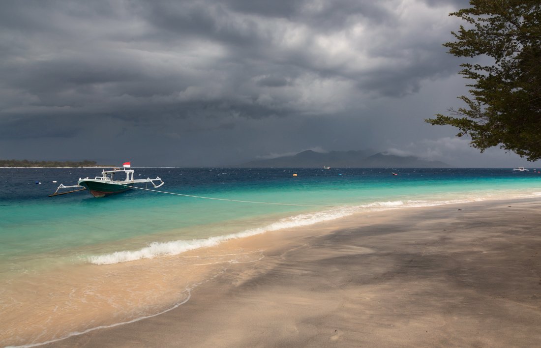 берег, песок, море, лодка, дерево, острова, тучи, индонезия, Георгий Машковцев