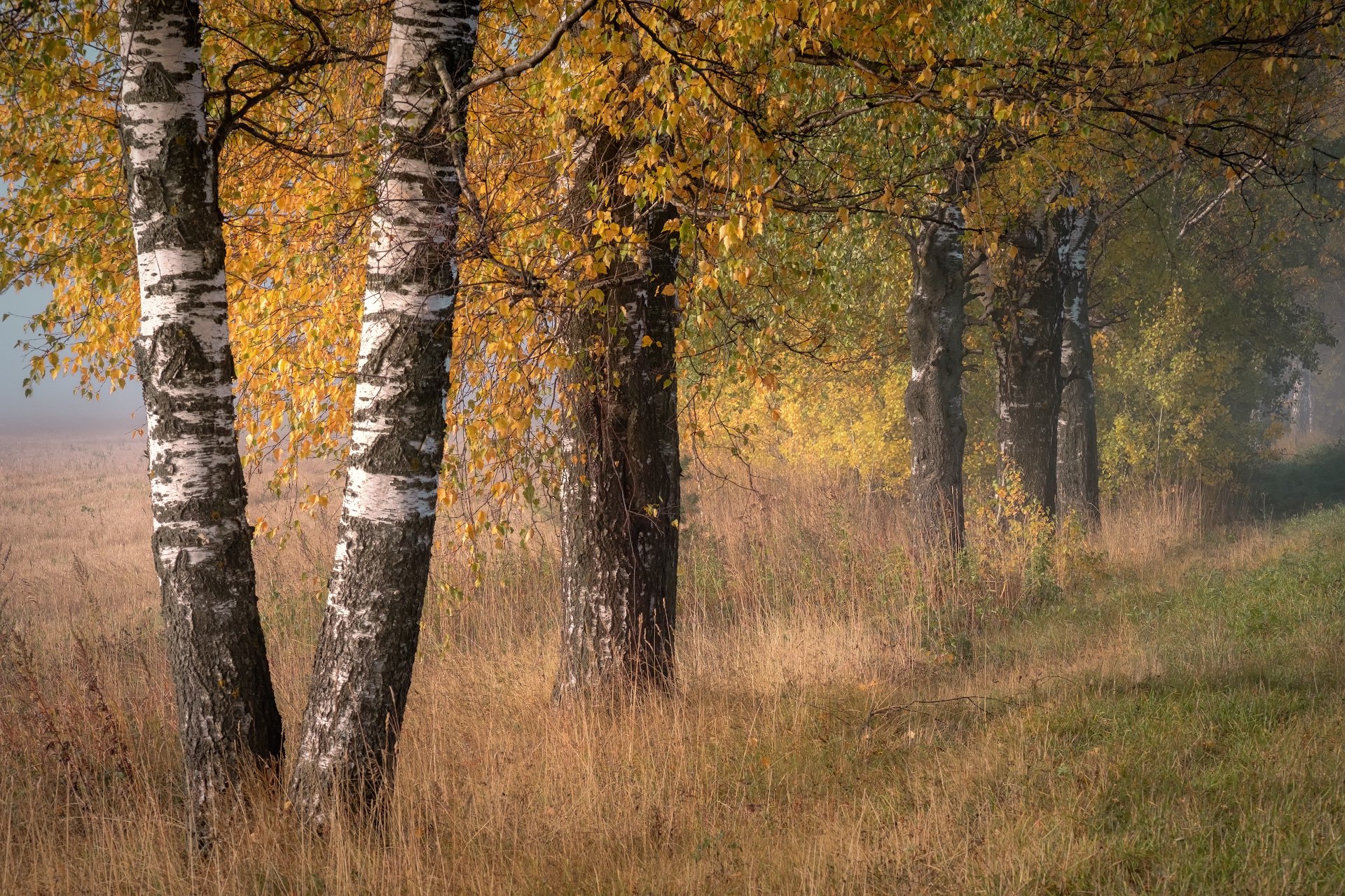 березы, деревья, утро, туман, прохлада, осень, сентябрь, бабье лето, Андрей Чиж