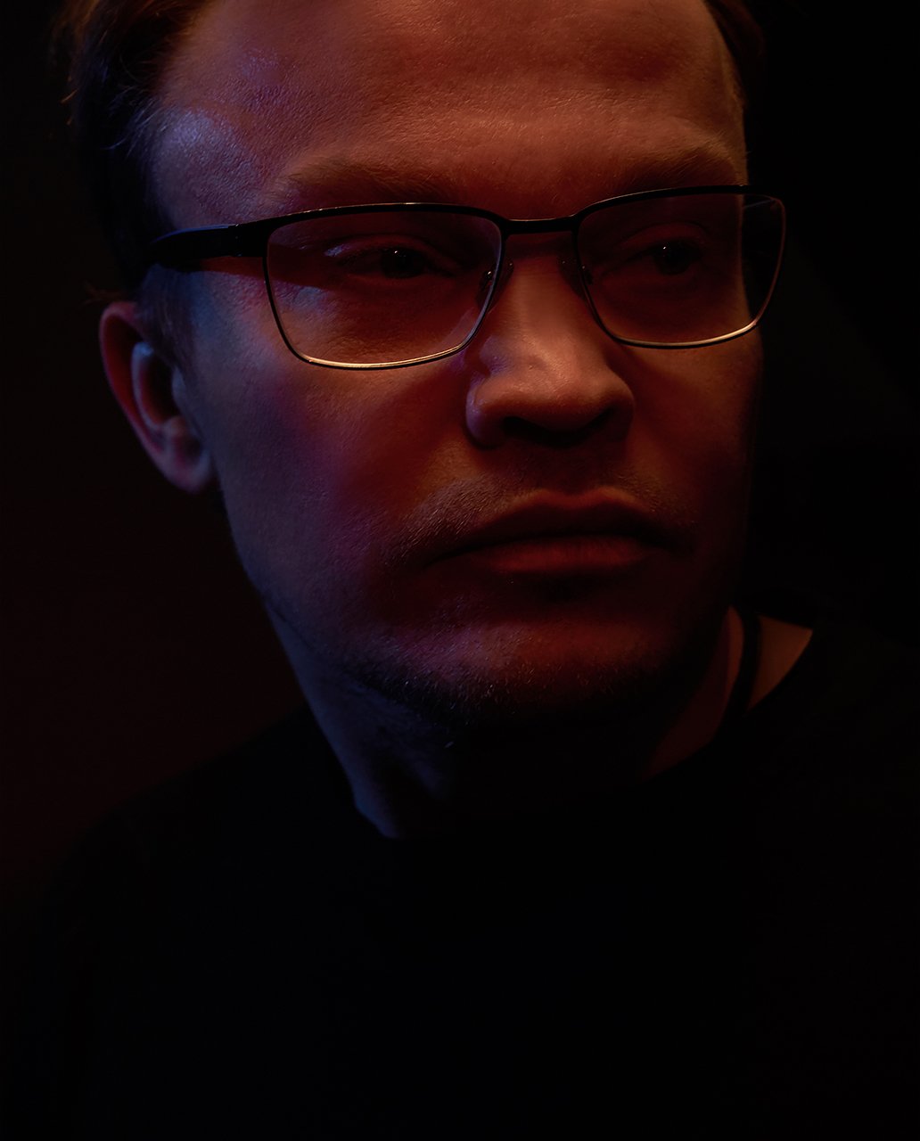 градиент, очки, синий, красный, черный фон, мужской, портрет , Дарья Комарова