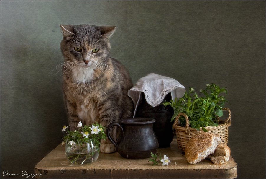 Мимо Кота пройти,ну ни как не возможно..!Замечательный натюр..А чё она травку не подъедает?Мой бы уже набросился..
