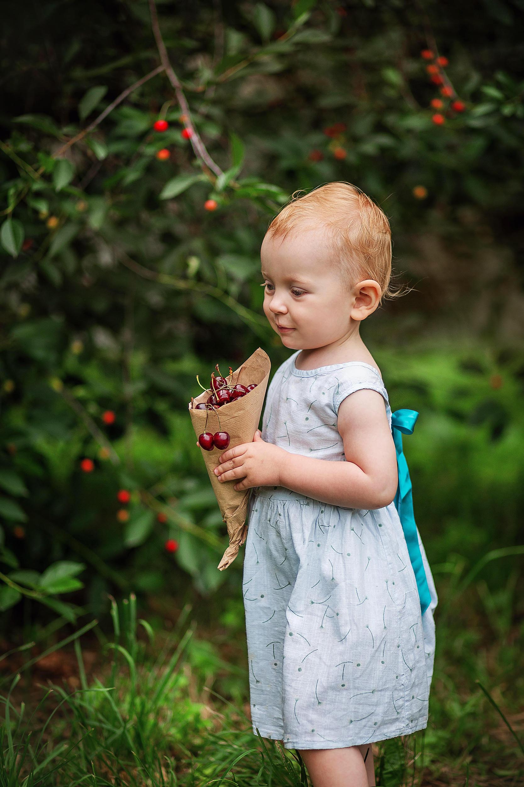 вишня, черешня, ягоды, кулёк, девочка, лето, урожай, еда, вкусно, витамины, сладко, зелень, природа, сад, девочка, малышка, милая, , Мила Шелест