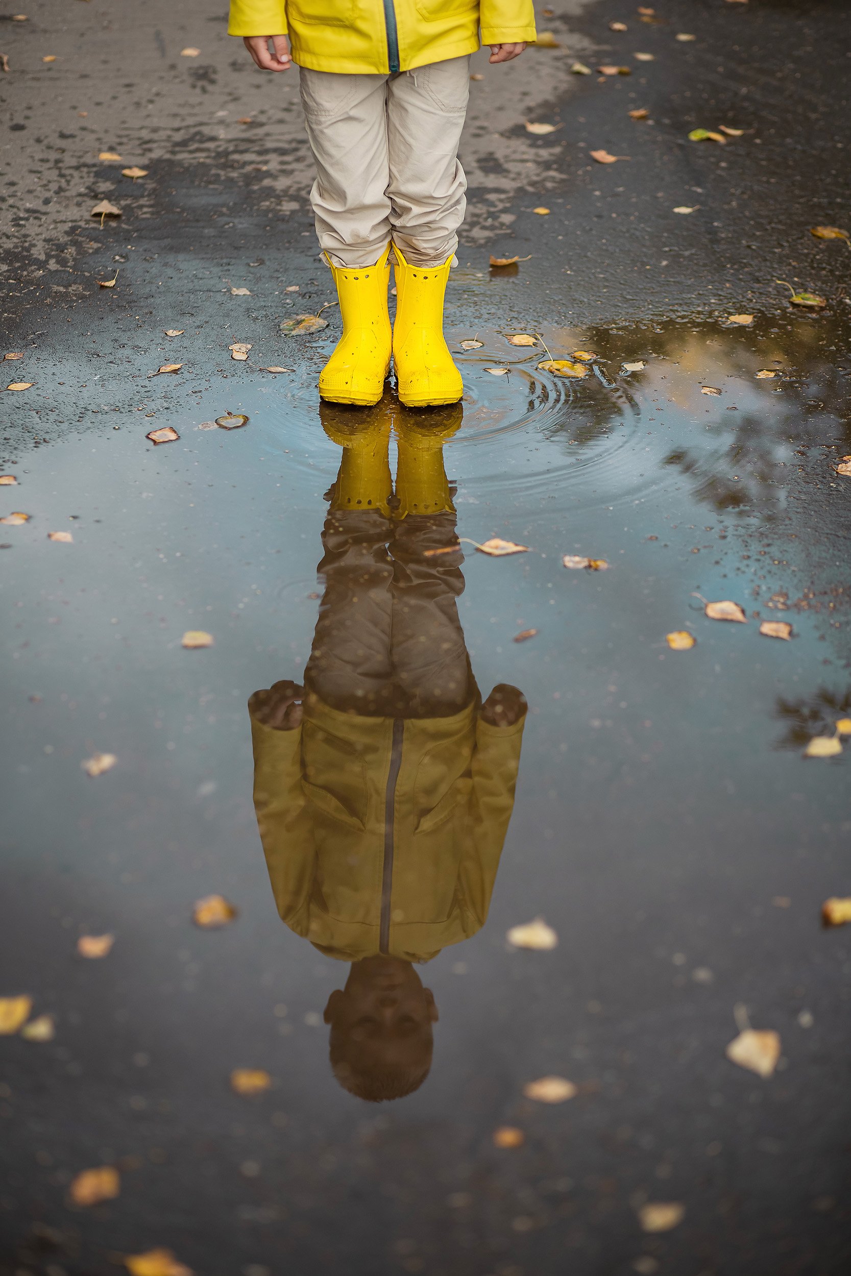 лужа, осень, желтый, сапоги, непромокаемый, отражение, зеркало, настроение, осенний, мальчик, ребенок, детство, Мила Шелест
