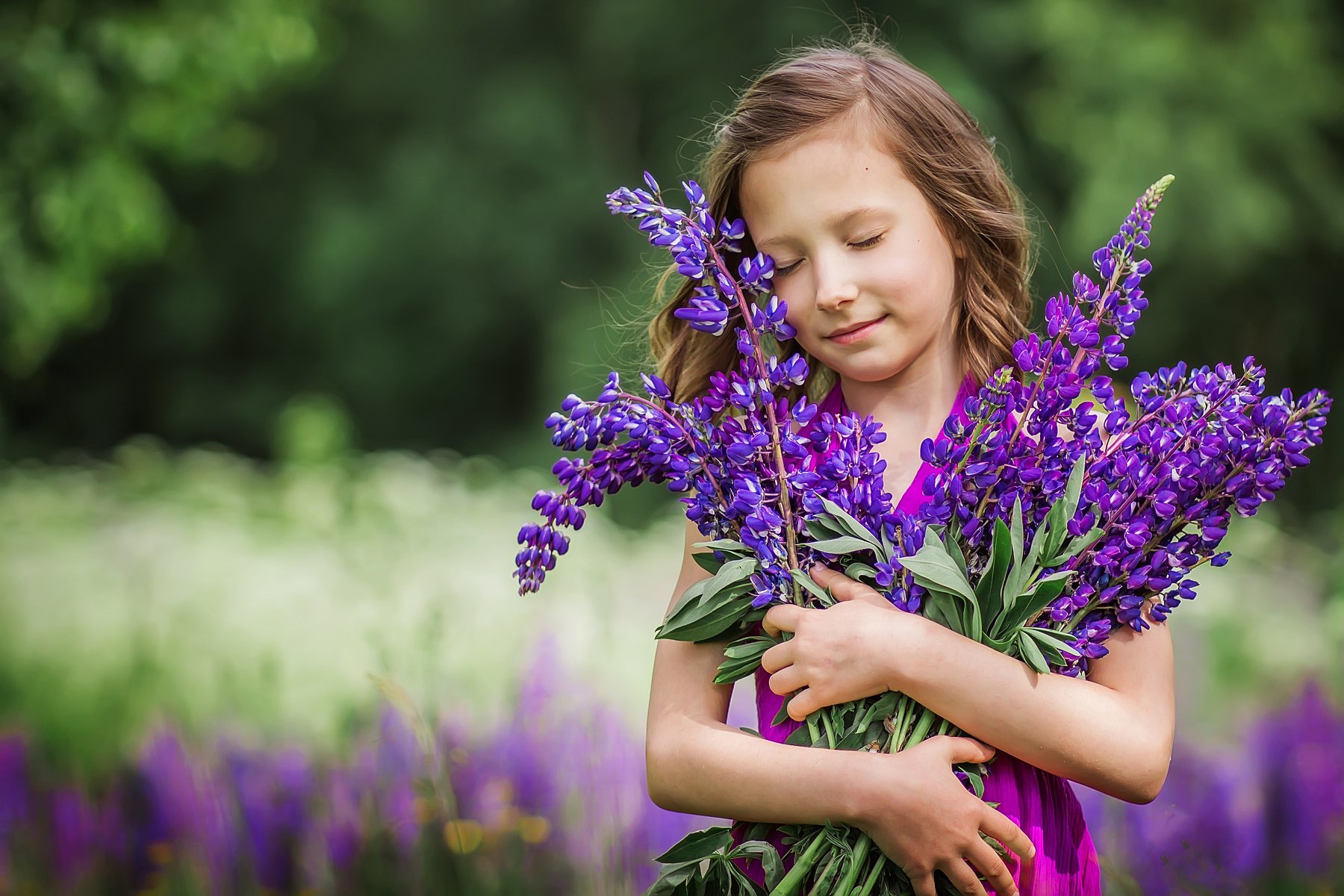 люпины, портрет, букет, девочка, лето, детство, весна, счастье, милая, красивая, Мила Шелест