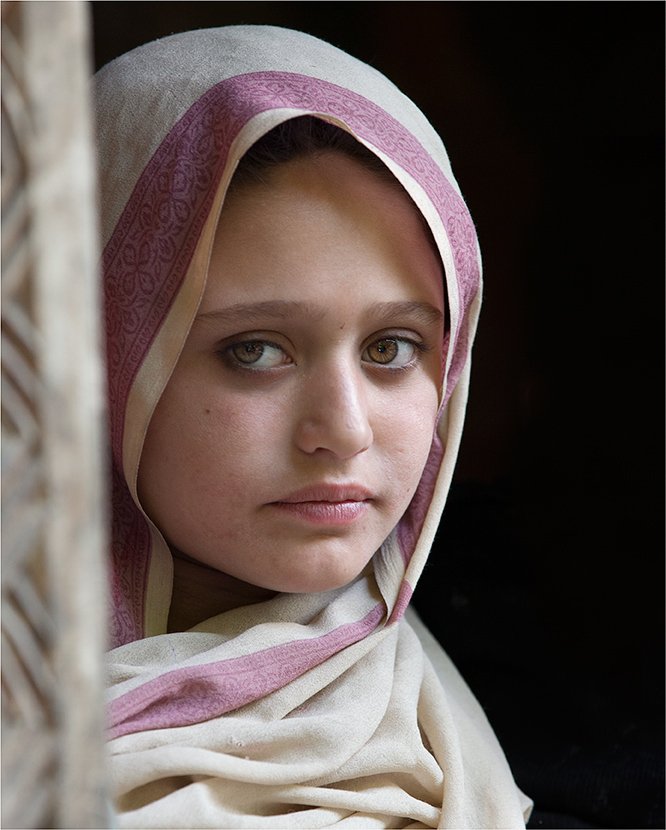 Эта девочка народности Калаш, что рядом с границей с Афганистаном. У многих из них светлые глаза и светлая кожа. Места эти малопосещаемые (по разным причинам), а гражданам некоторых стран пермиты (разрешения) вообще не выдаются в эту территорию. Без пермита вас остановят на первом же посту и не пустят. Когда я получал пермит в полицейском участке города Читрал, то на стене висела сводная таблица за 12 лет - сколько граждан разный стран получили пермиты. Больше всего англичан, потом австралийцы (?), потом немцы и японцы и т.д. Обратите внимание - за 12 лет на эту территорию заехало всего 58 россиян. Я был 59-м........