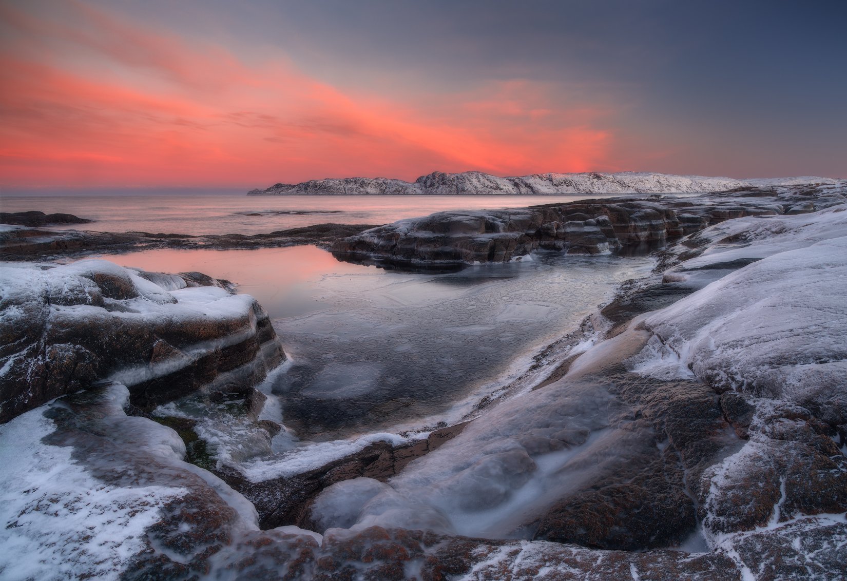пейзаж,россия,кольский,север,море,зима,лёд,закат,панорама, Виталий Истомин