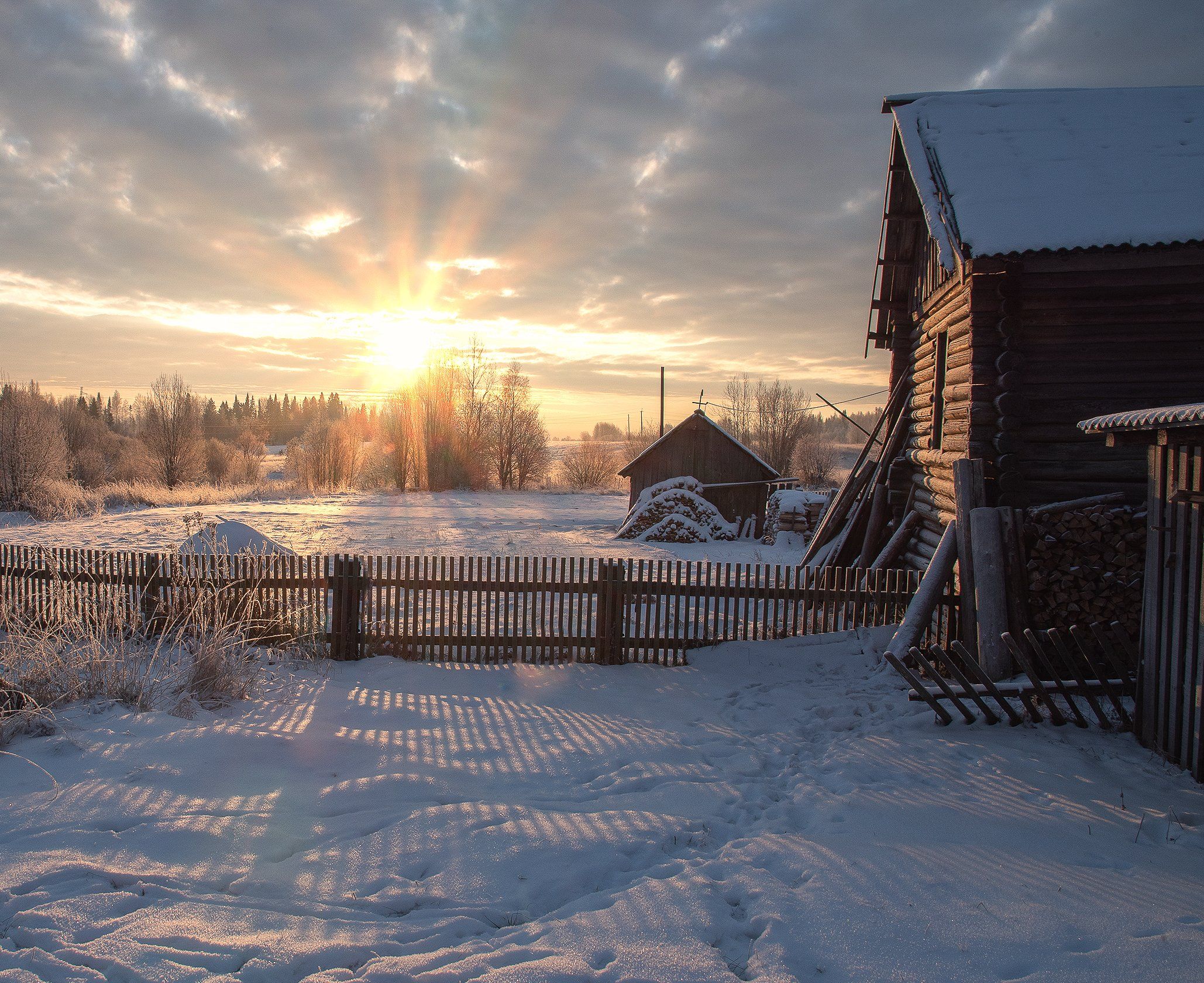 деревня, рассвет, зима, Карепанов Евгений