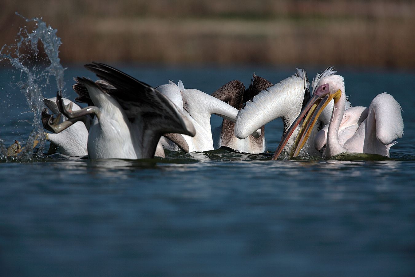 Самое большое удовольствие в съёмке, когда птица увлечённая своим занятием перестаёт замечать тебя,в эти мгновения она открывается во всей своей красе. Пеликаны -самые огромные летающие птицы ,к сожалению у нас это только гости осени ,когда они перелетают с севера на юг