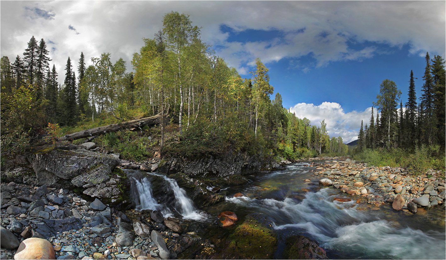 Кузнецкий Алатау, Поднебесные Зубья, р. Малый Казыр. панорама 12 кадров.