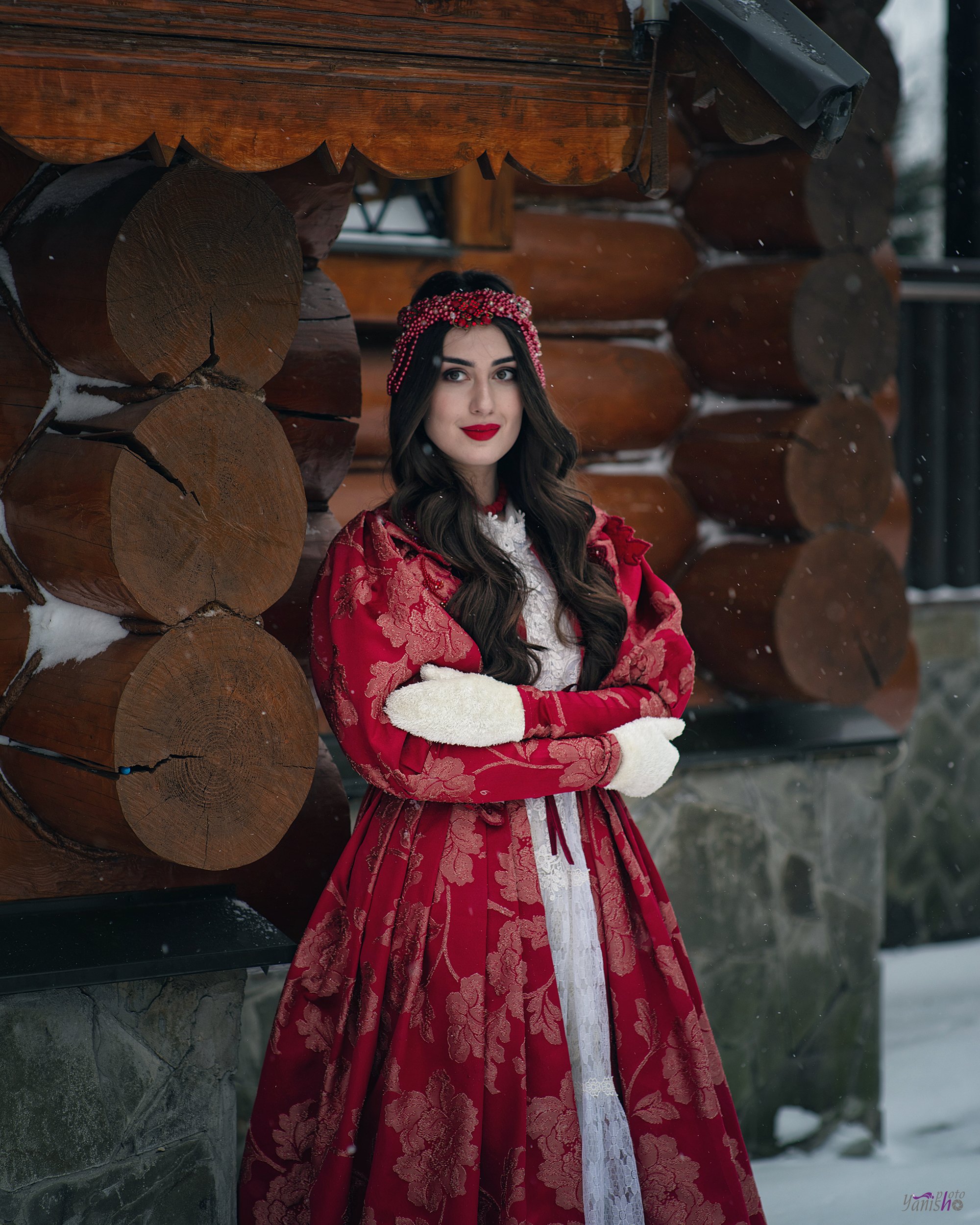 зима, портрет, парк, девушка, сказка, Белоснежка, красный, белый, изба, русский, Янина Ермакова