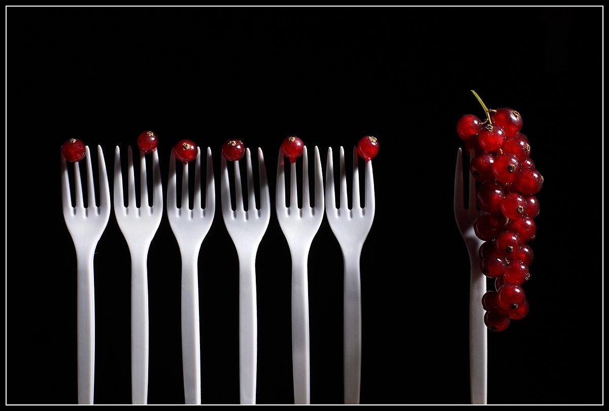 У вас есть потрясающие варианты с прищепками! ( и не важно что там в ч/б Чувствуется масса и полутона!) Одинокие грозди занимают лидирующие позиции (по идеи видимо в мечтах)Но они слишком редки(близко) может повернуть сами вилки боком - тогда будут и полутень и пространство благодаря тому что у черного фона расширяться пространство!