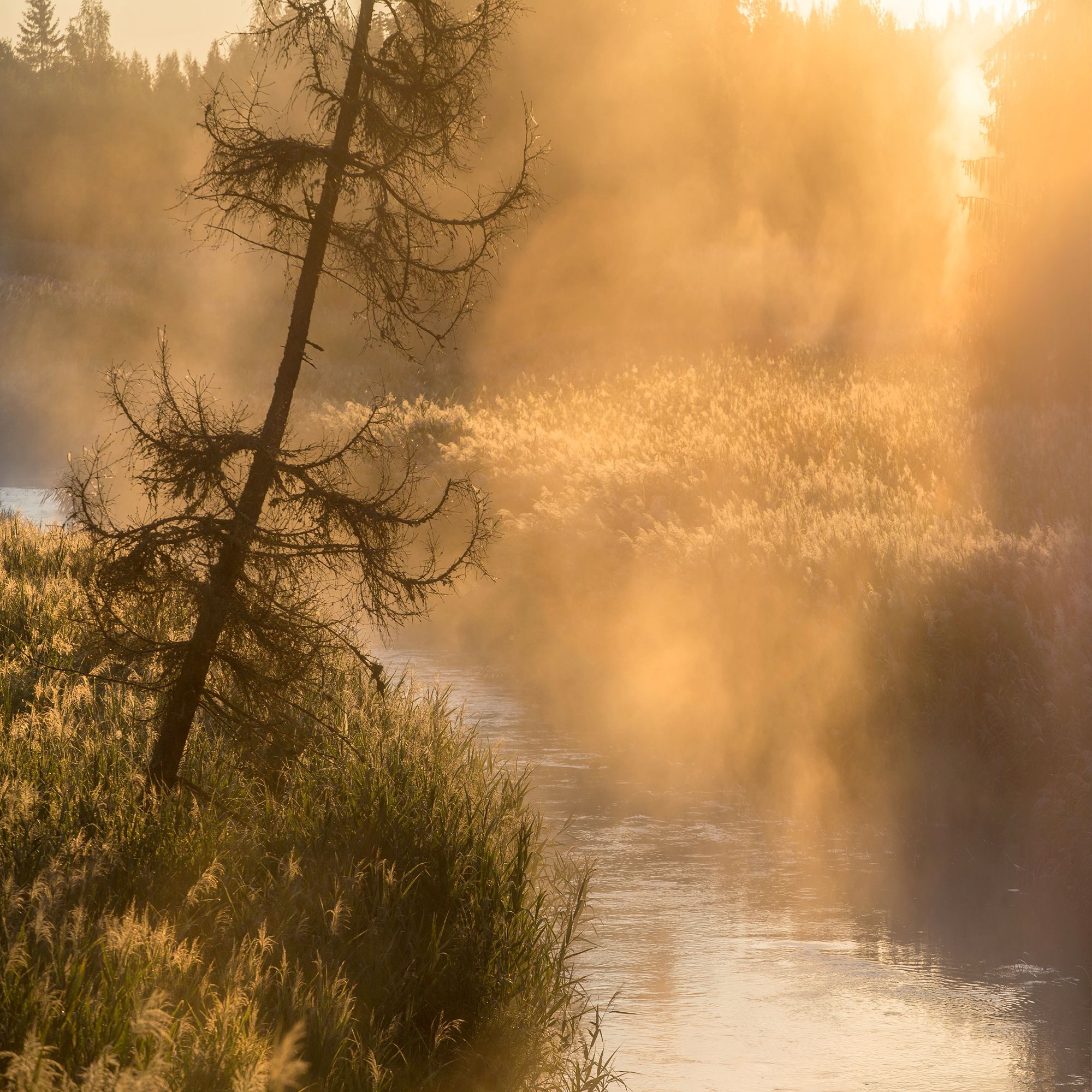 река, утро, туман, рассвет ,север ,солнце, свет, закат, облака, отражение, Павел Ващенков