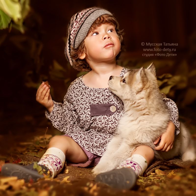 Осень и щенки хаски