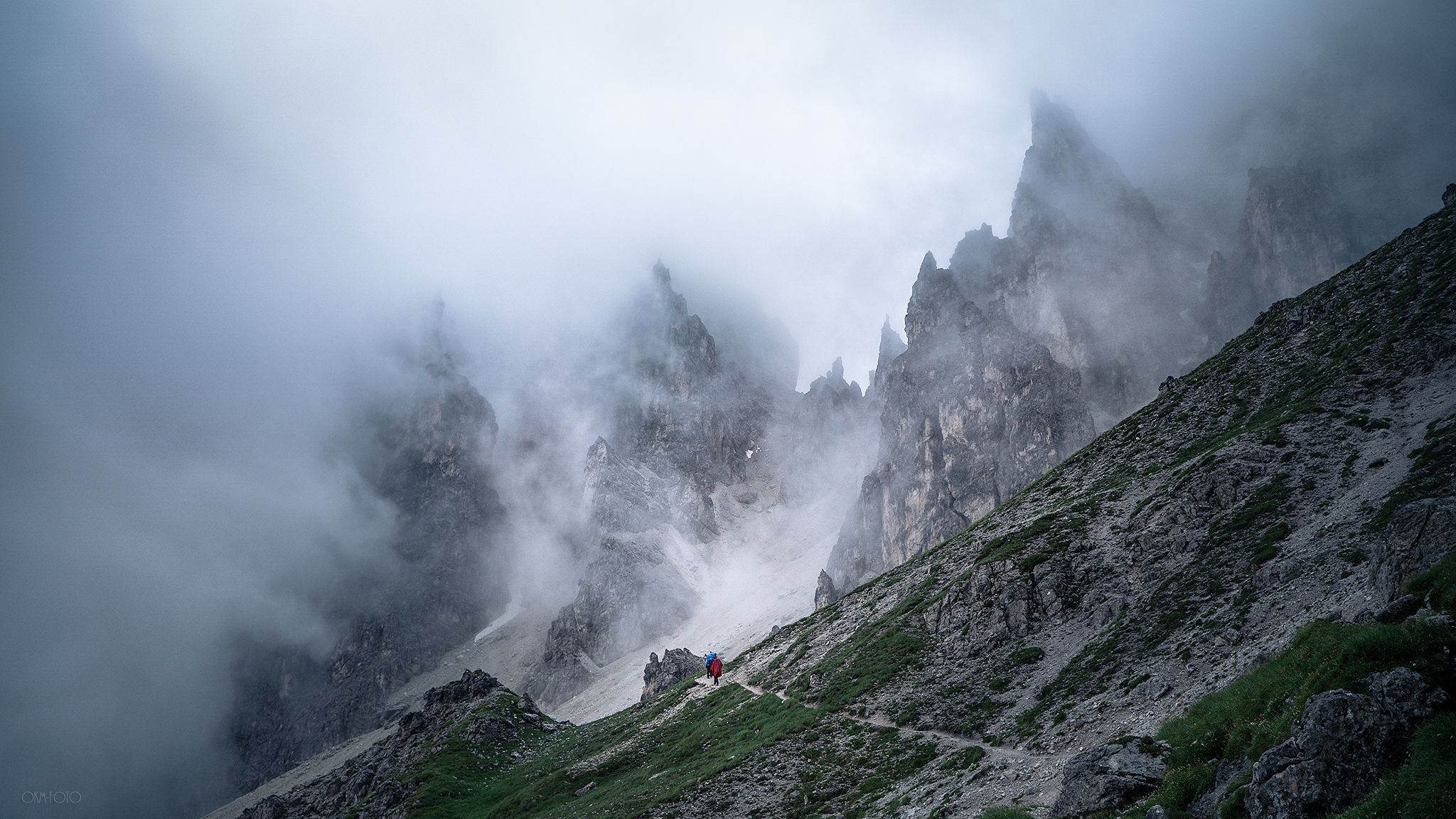На маршруте по Южному Тиролю. Перевал на 2600м. Низкие облака и дождик - видимость буквально несколько метров. Этих скал ещё пару минут назад не было видно. И вдруг "разорвало" и открылась вот такая мистическая картина... На пару минут... Но я успел... )