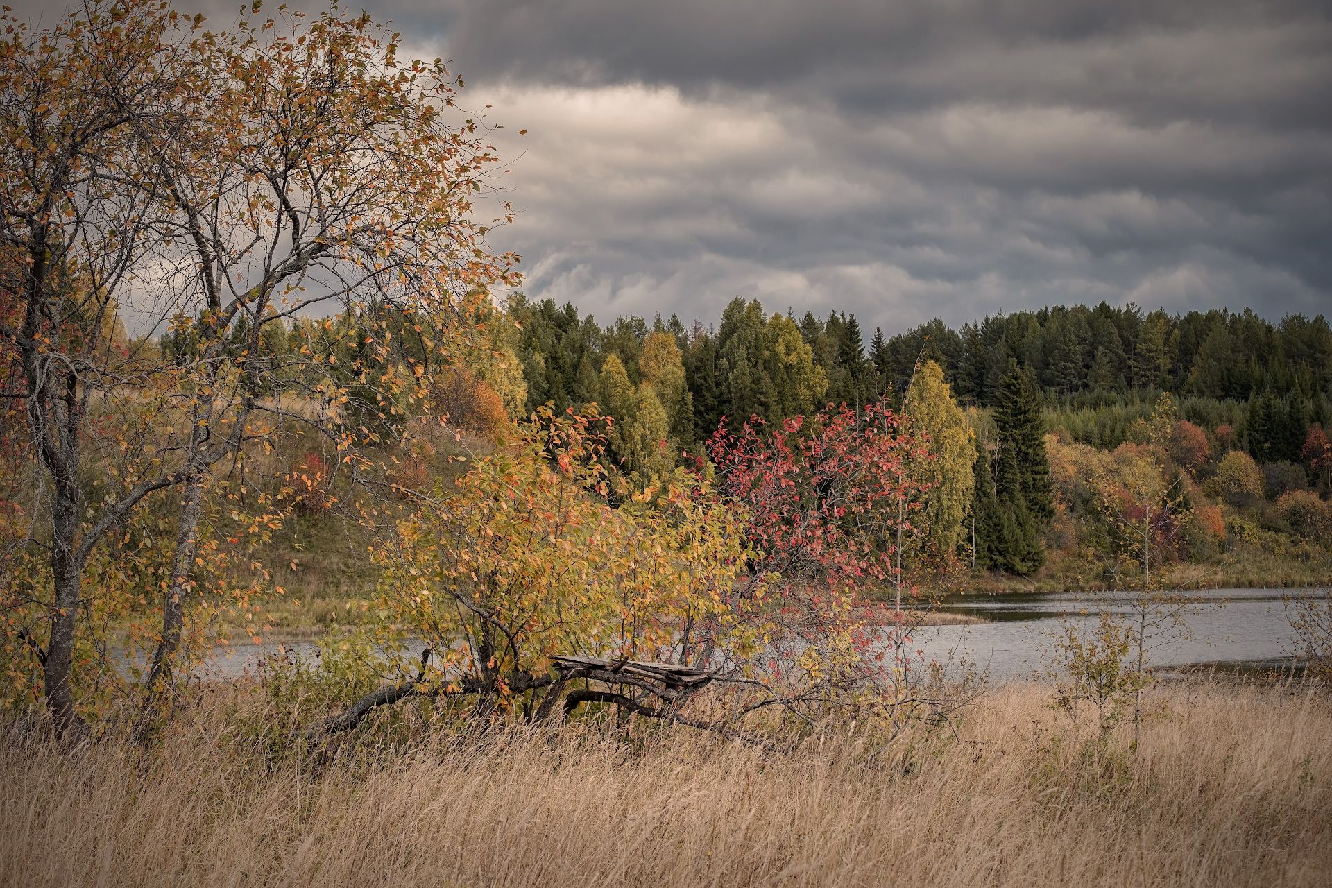осень, сентябрь, деревья, золото, желтый, красный, небо, облака, урал, пермь, вахрино, Андрей Чиж
