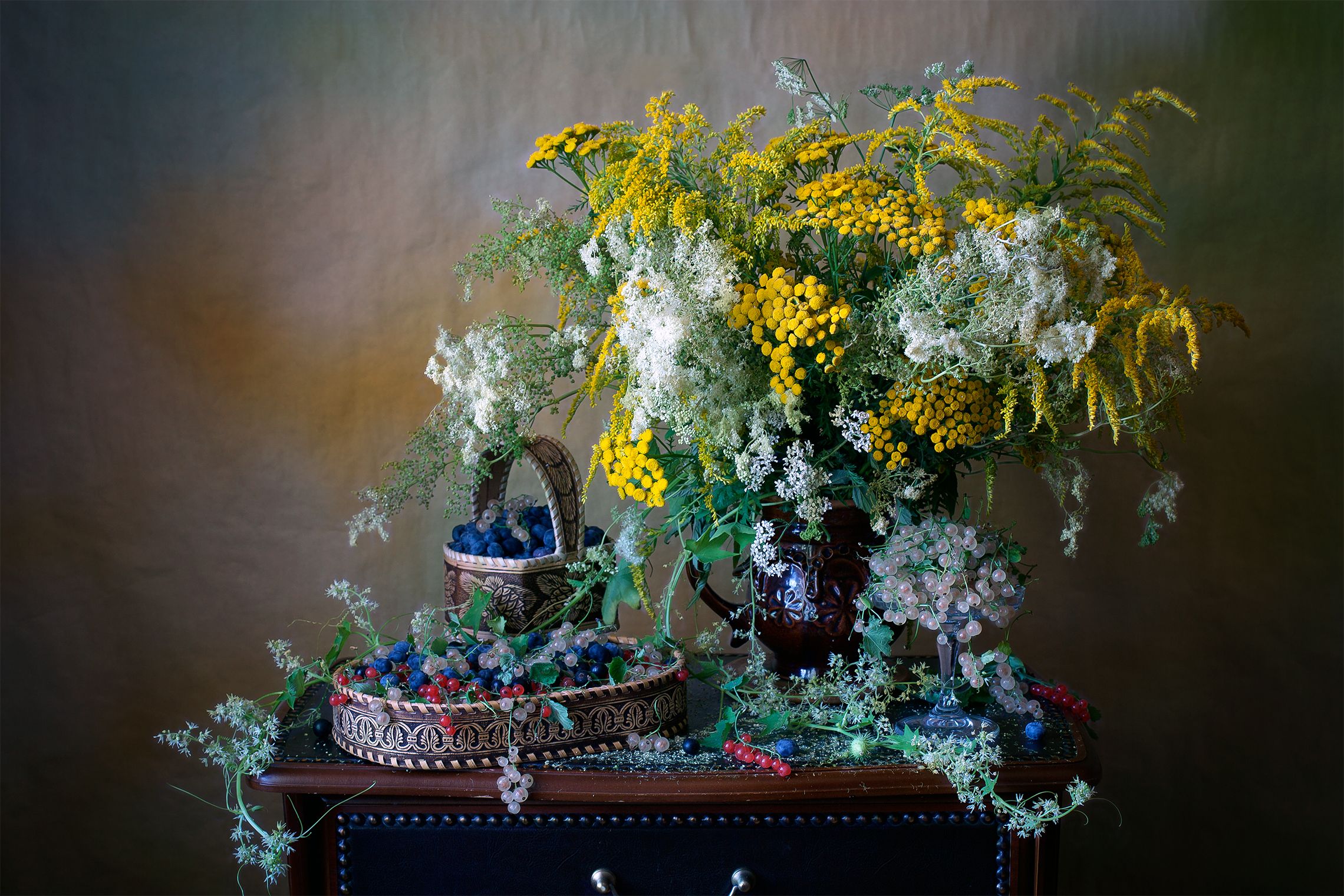 миламиронова, фотонатюрморт, букет, лето, цветы, ягоды, голубика, смородина, Мила Миронова