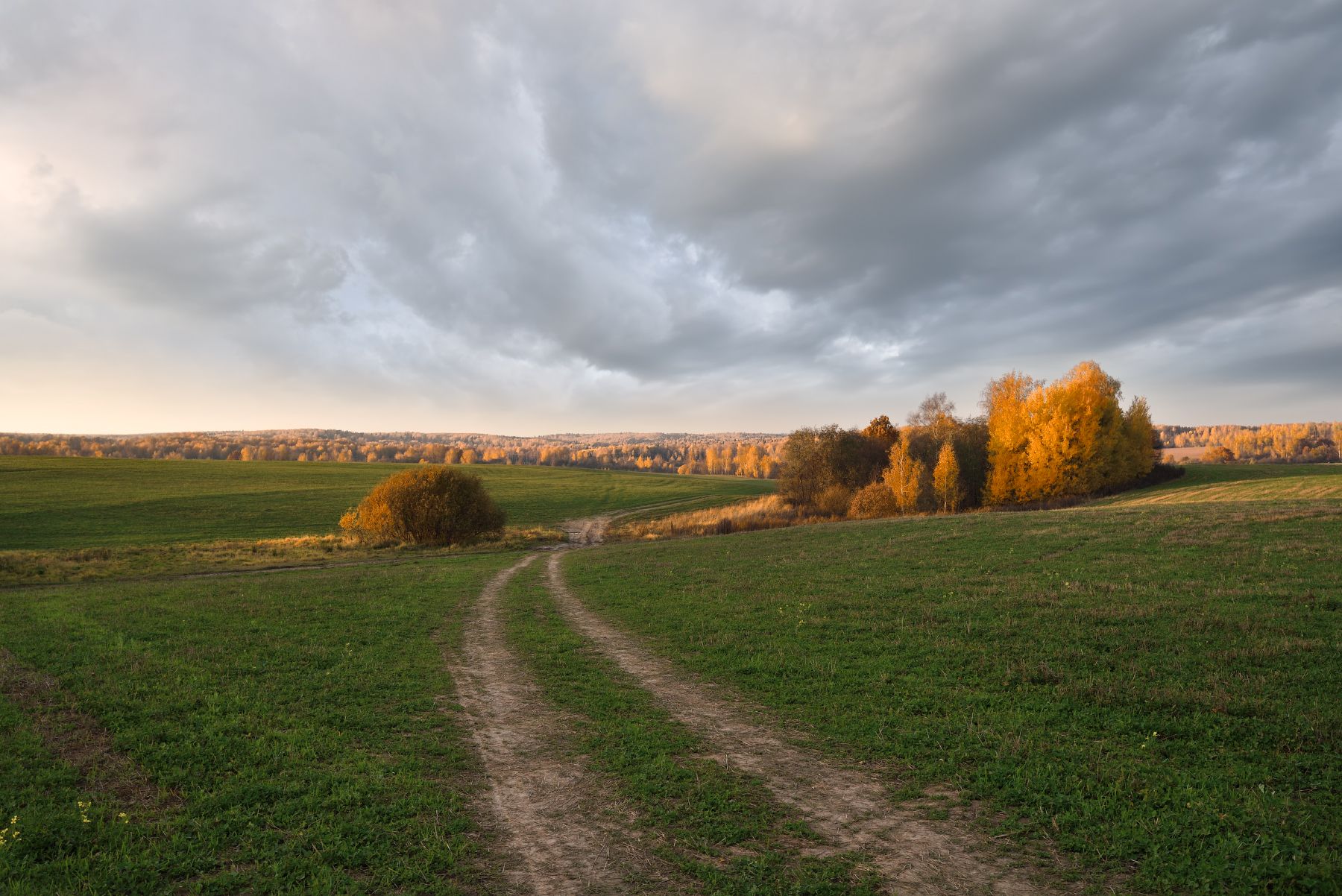 осень,поле,дорога,свет,деревья,небо,облака,закат, Виталий Полуэктов