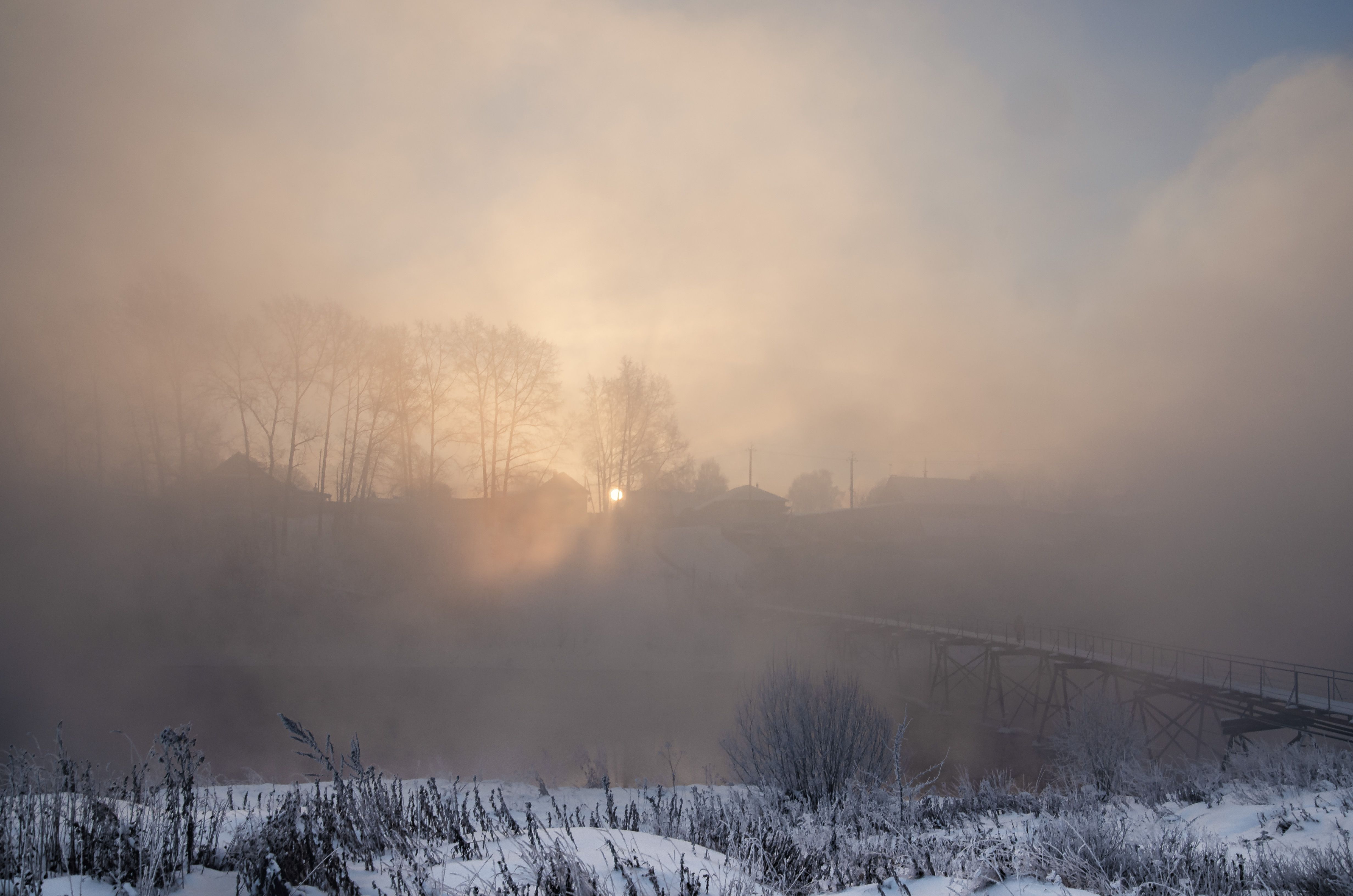 пейзаж, зима, туман, рассвет, Андрей Малыгин
